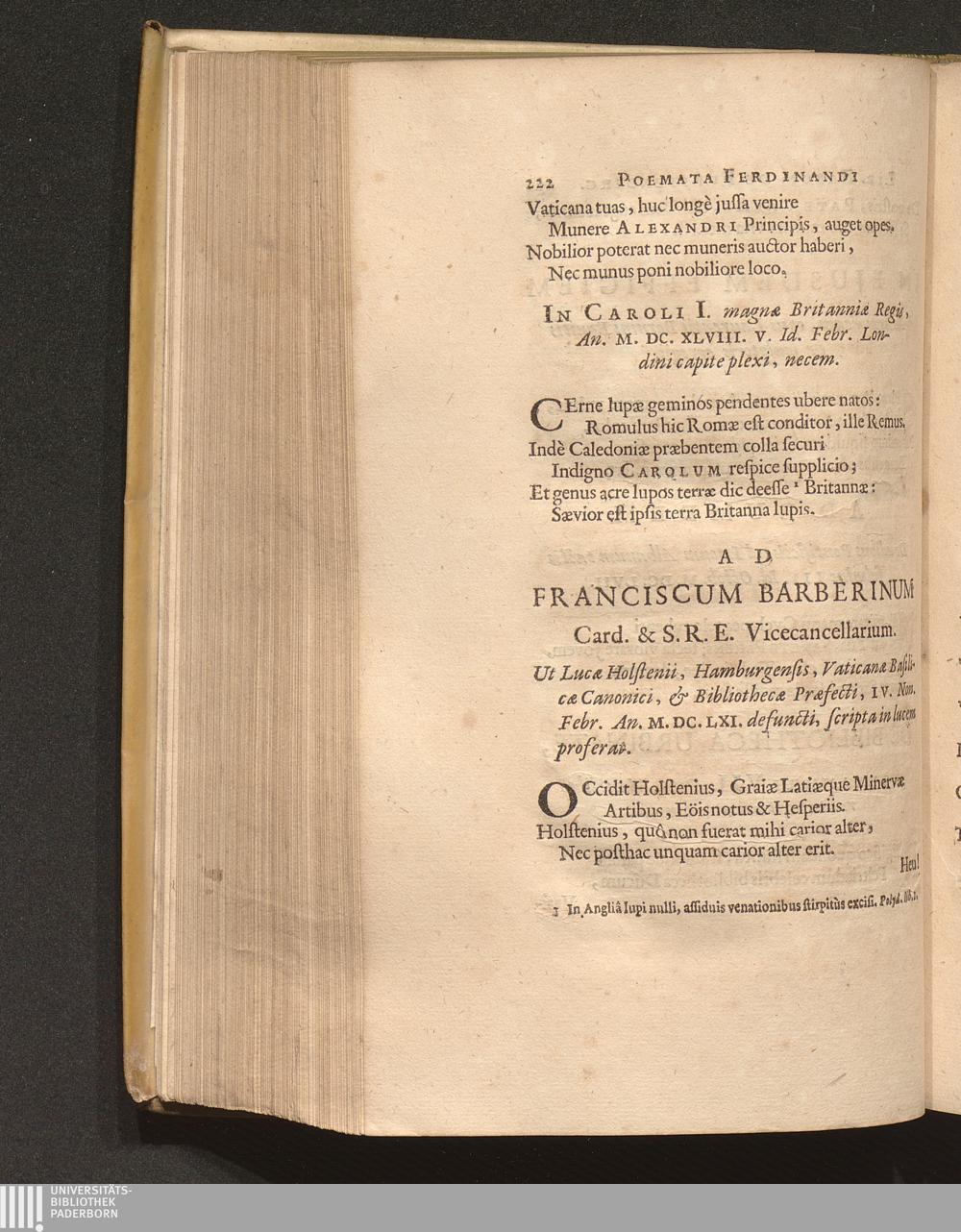 Ad Franciscum Barberinum Card. & S. R. E. Vicecancellarium. Ut Lucae Holstenii, Hamburgensis,[...]