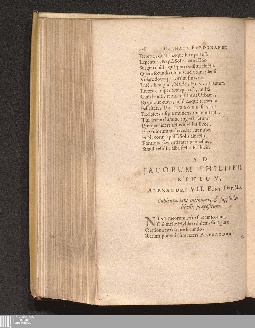 Ad Jacobum Philippum Ninium, Alexandri VII. Pont. Opt. Max. Cubicularium intimum,[...]