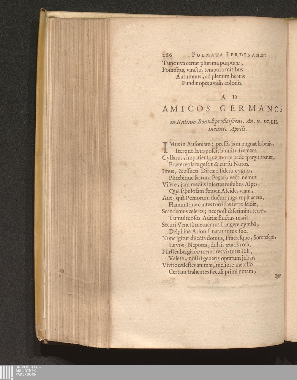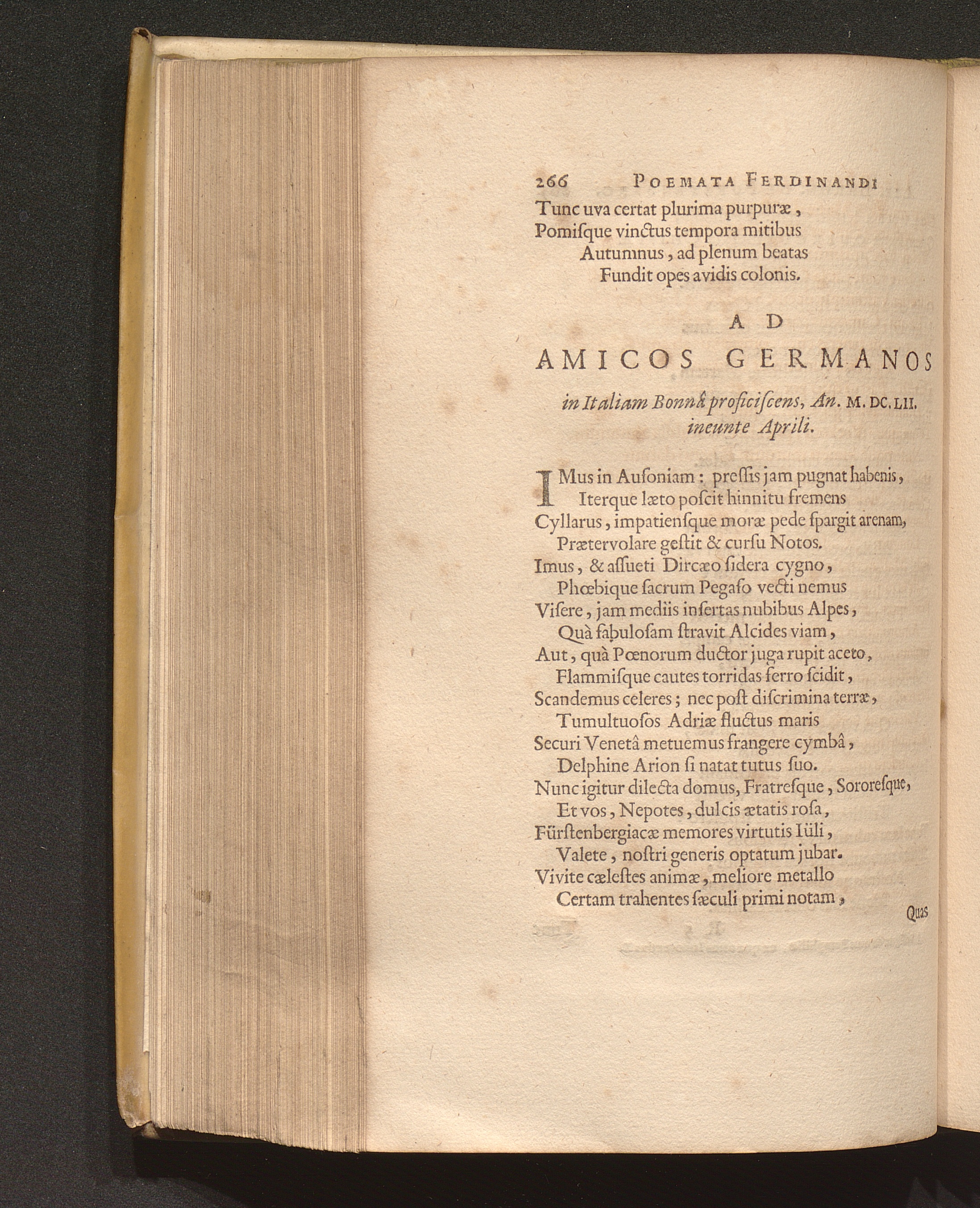 Ad Amicos Germanos in Italiam Bonnâ proficiscens, An. M. DC. LII. ineunte Aprili[...]