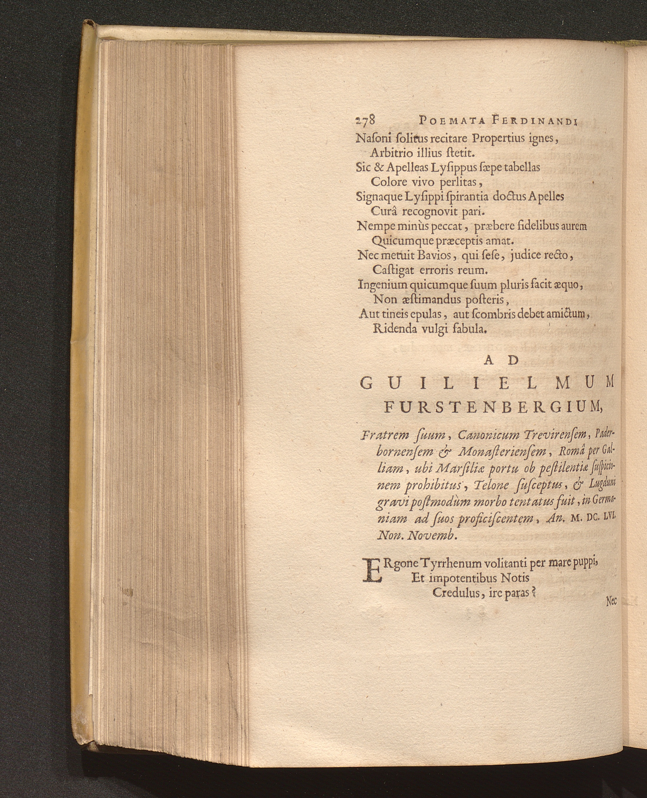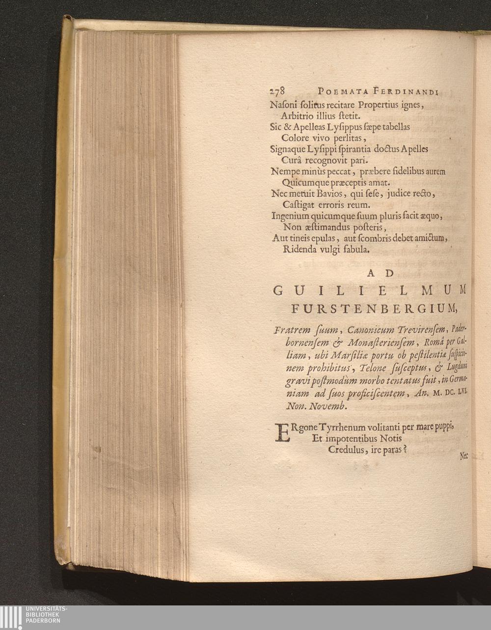 Ad Guilielmum Furstenbergium, Fratrem suum, Canonicum Trevirensem, Paderbornensem[...]
