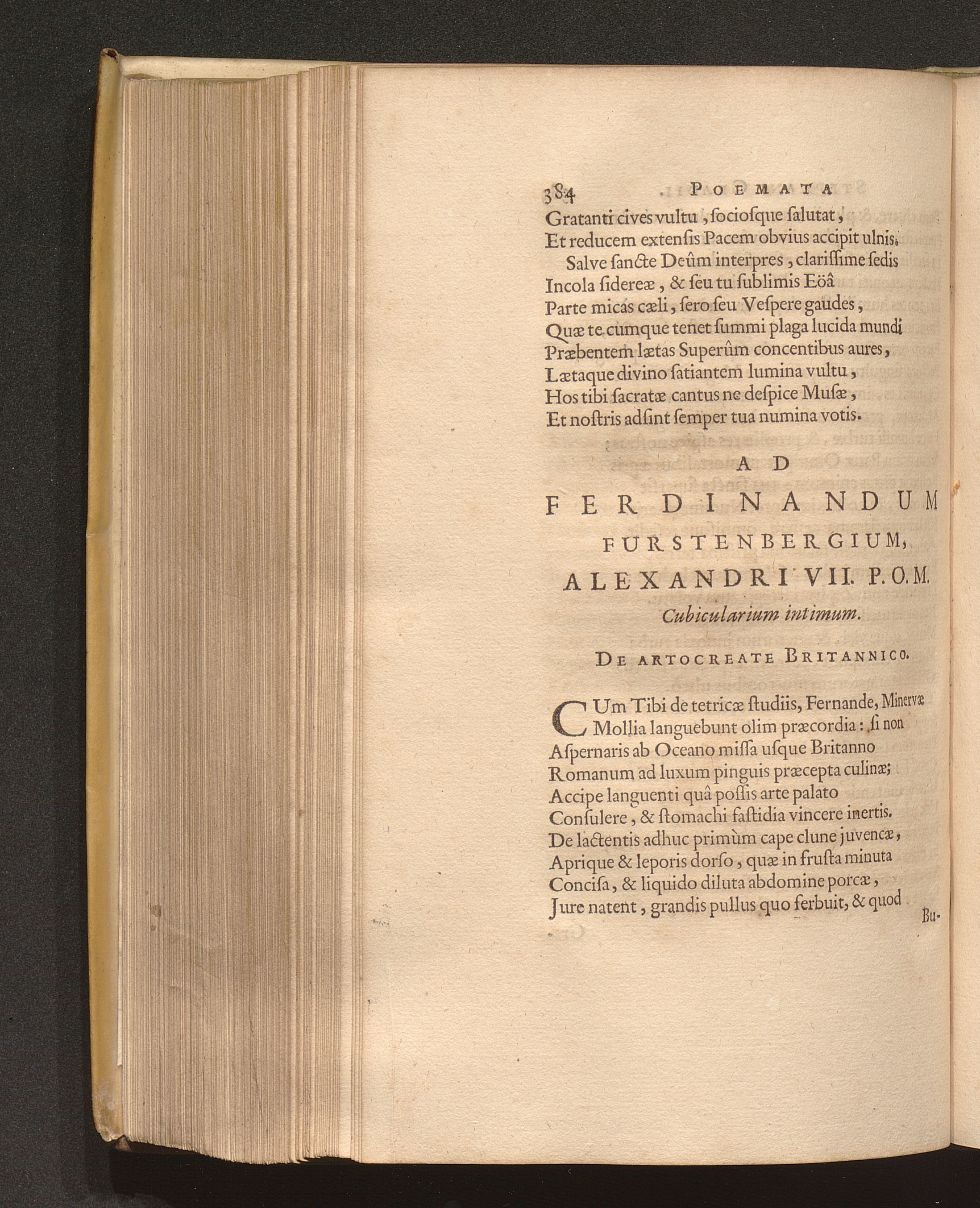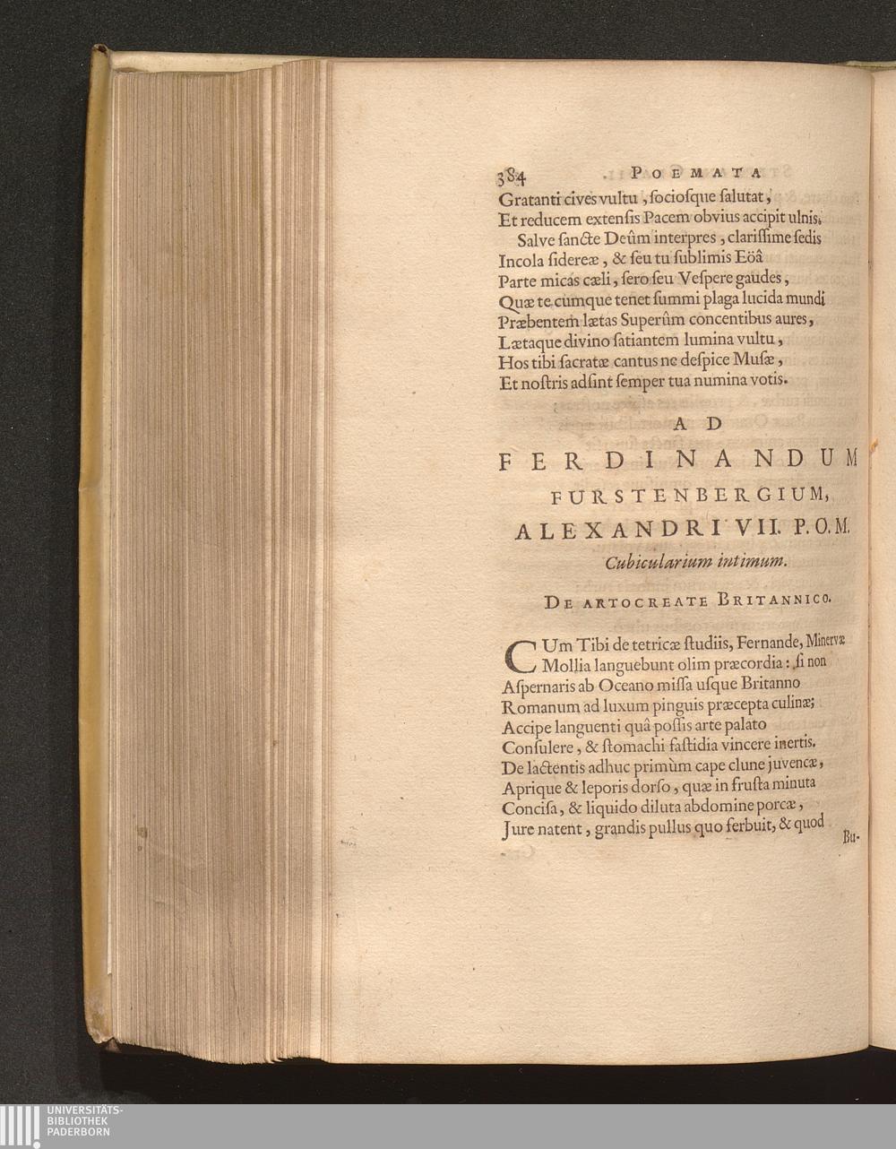 Ad Ferdinandum Furstenbergium, Alexandri VII. P. O. M. Cubicularium intimum. De Artocreate[...]
