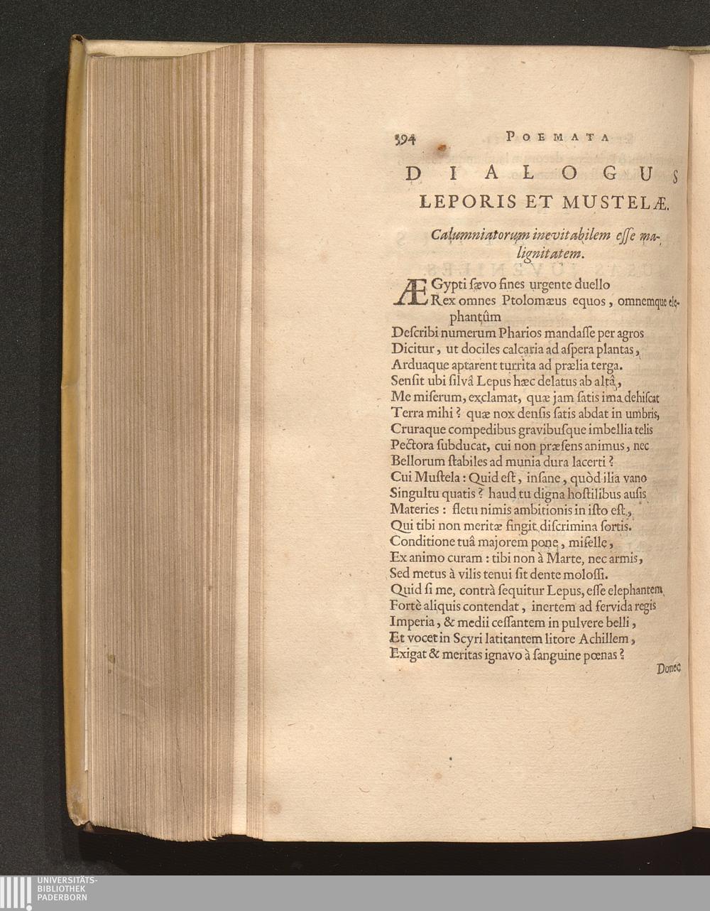 Dialogus Leporis Et Mustelae. Calumniatorum inevitabilem esse malignitatem.