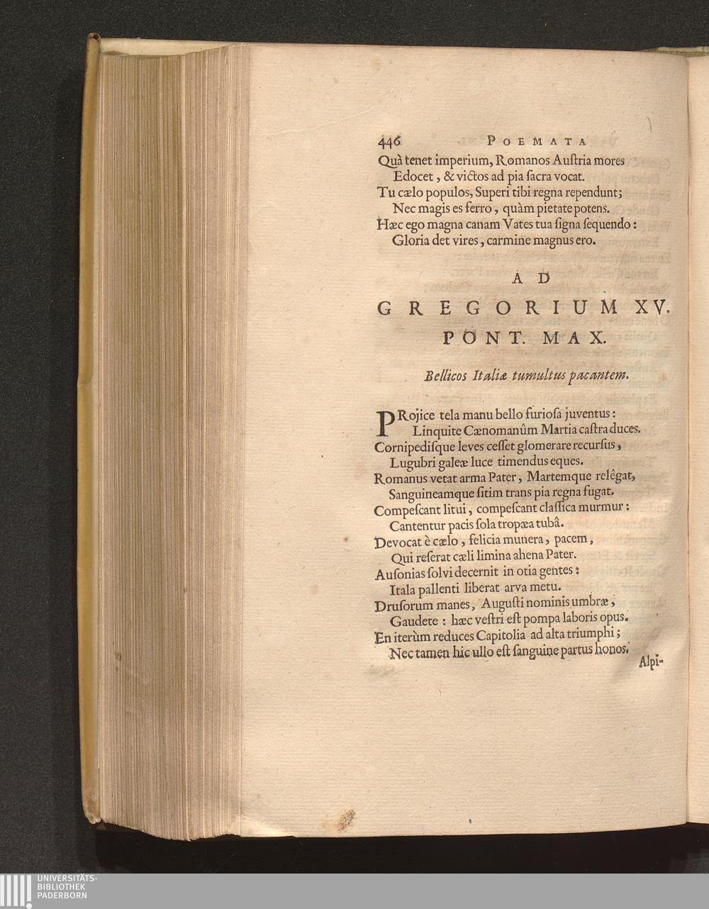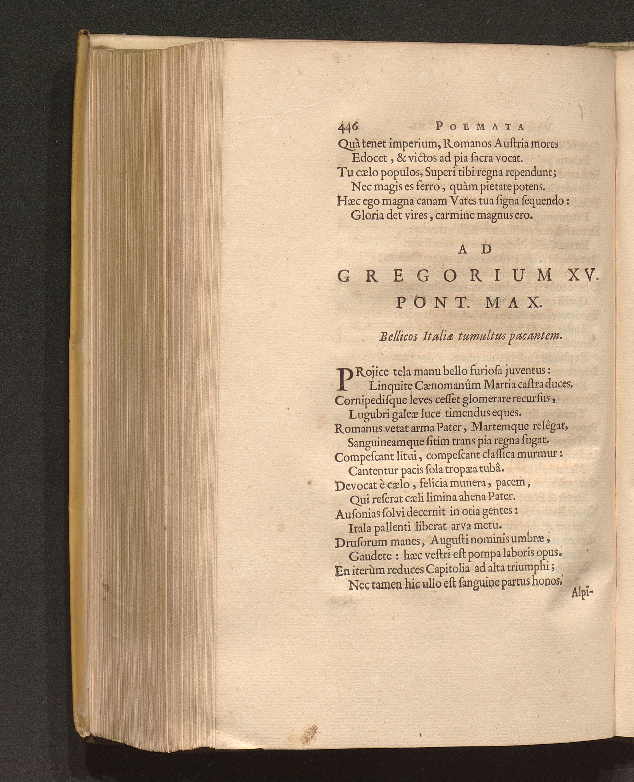 Ad Gregorium XV. Pont. Max. Bellicos Italiae tumultus pacantem.