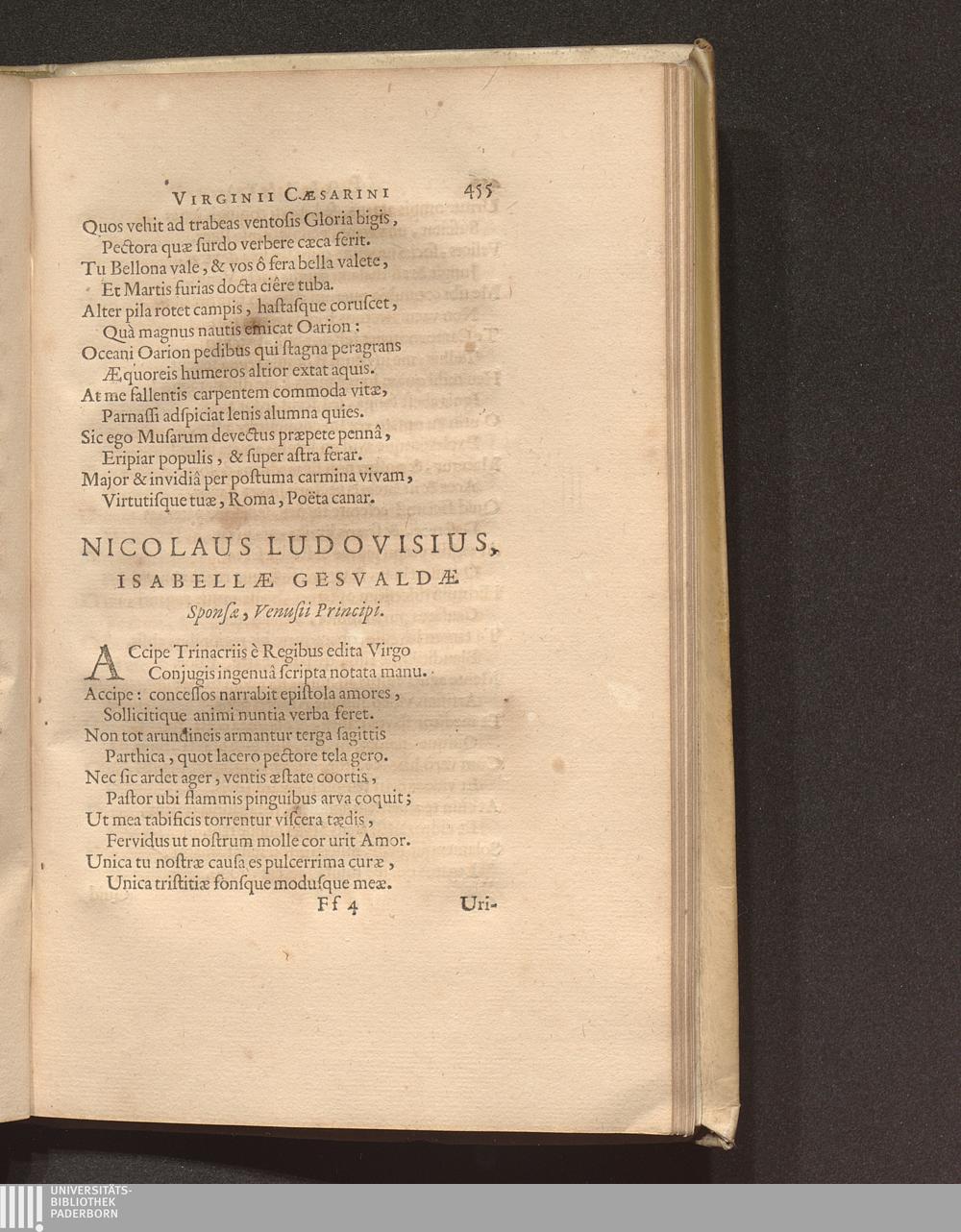 Poemata Virginii Caesarini, Urbani VIII. Pont. Opt. Max. Cubiculo Praefecti.