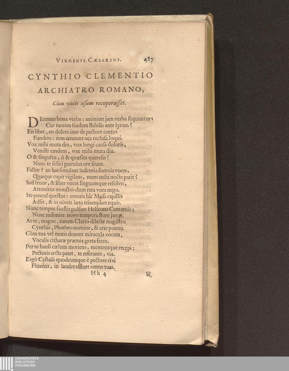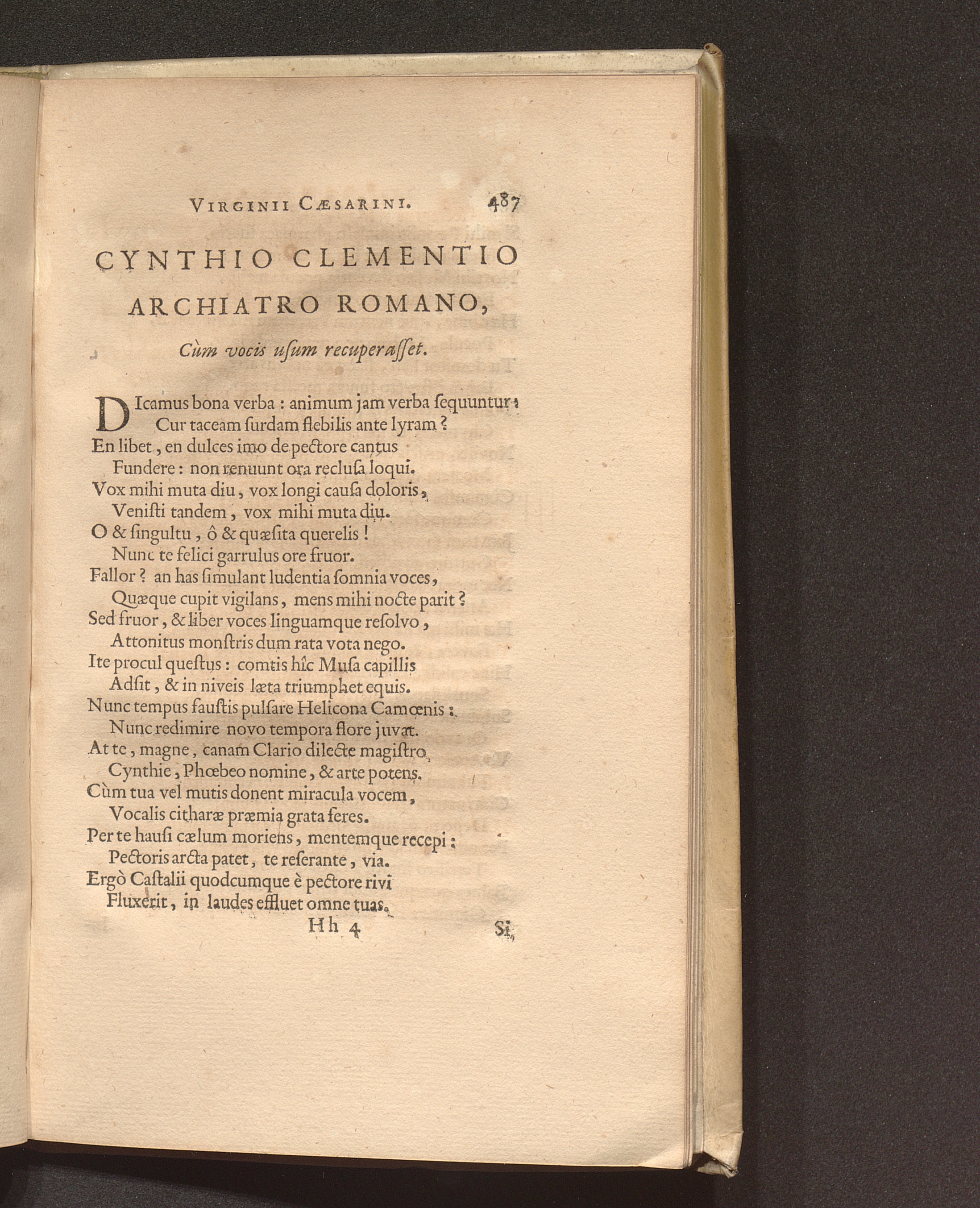 Cynthio Clementio Archiatro Romano, Cùm vocis usum recuperasset.