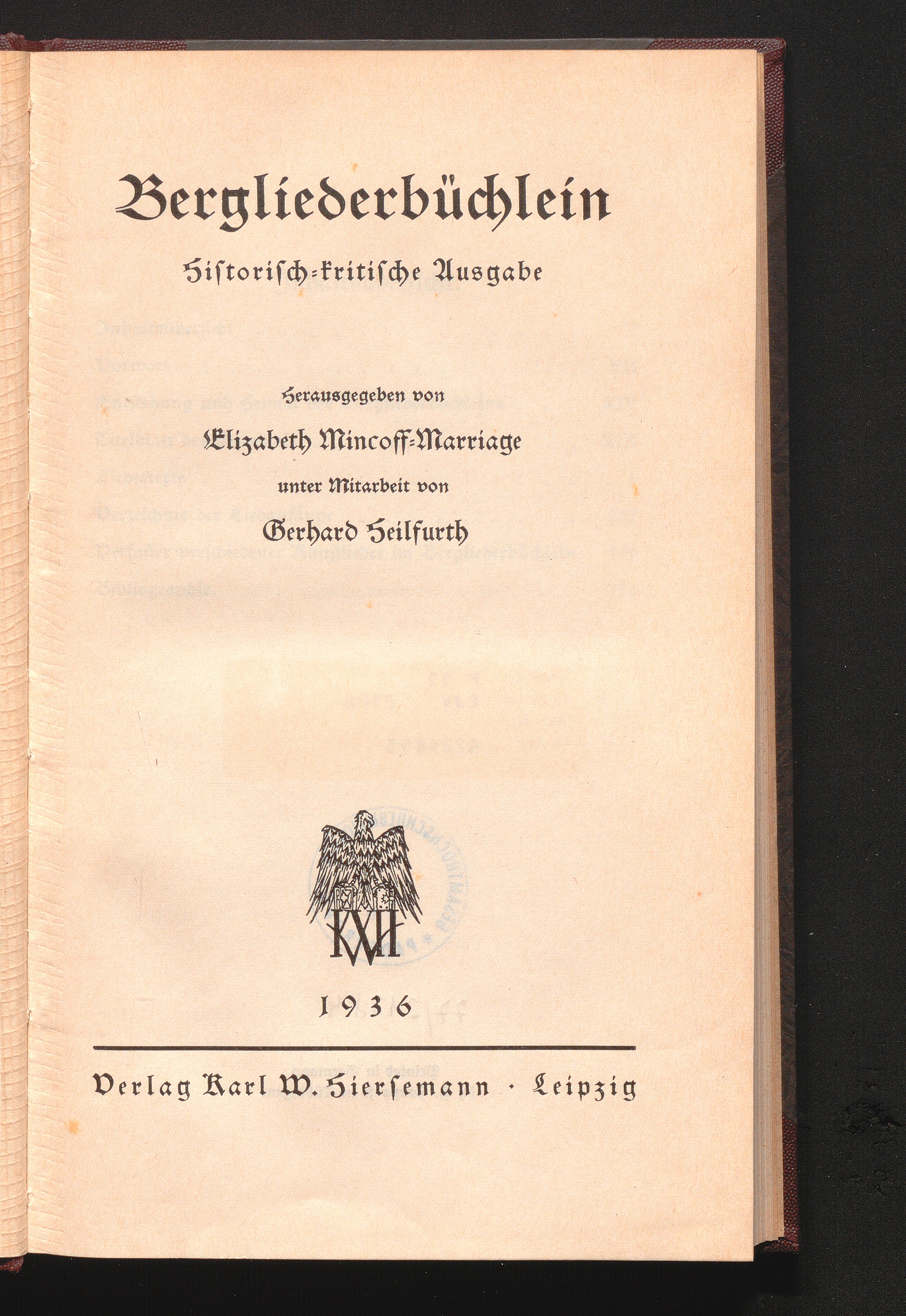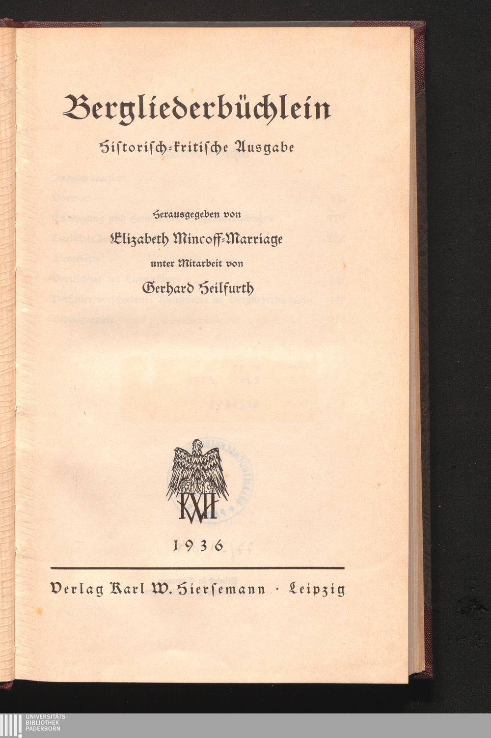 Bergliederbüchlein : historisch-kritische Ausgabe / hrsg. von Elizabeth Mincoff-Marriage unter Mitarb. von Gerhard Heilfurth