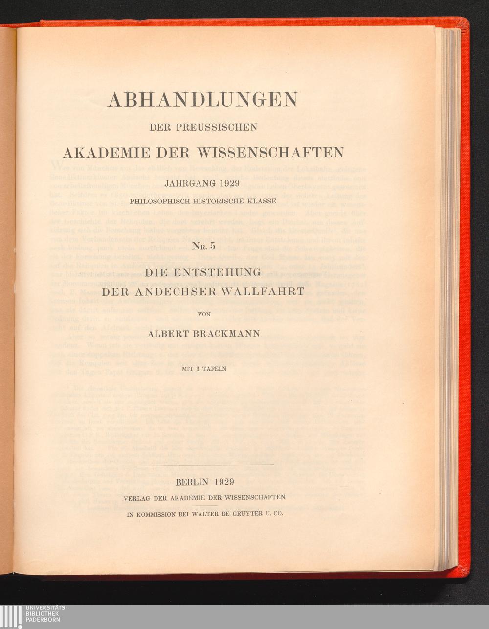 Die Entstehung der Andechser Wallfahrt / von Albert Brackmann