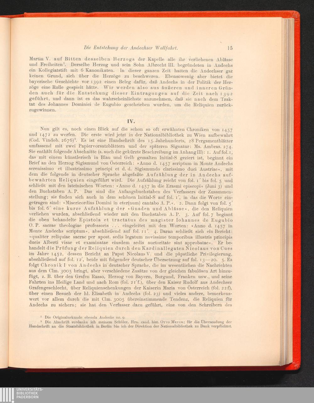 Taf. III. Abschrift der Notiz des Chunradus conversus de Monte s. Petri qui dicitur Madron in Clm. 3005 fol. 15' (von Hand II, dem Hauptschreiber.