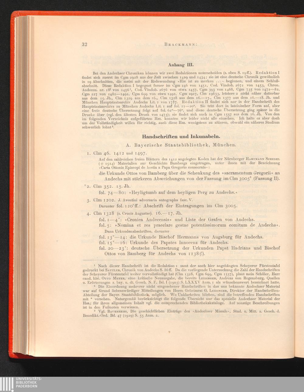 Anhang II. Kurze Inhaltsangabe der Eintragungen in Clm. 3005 in Regestenform.