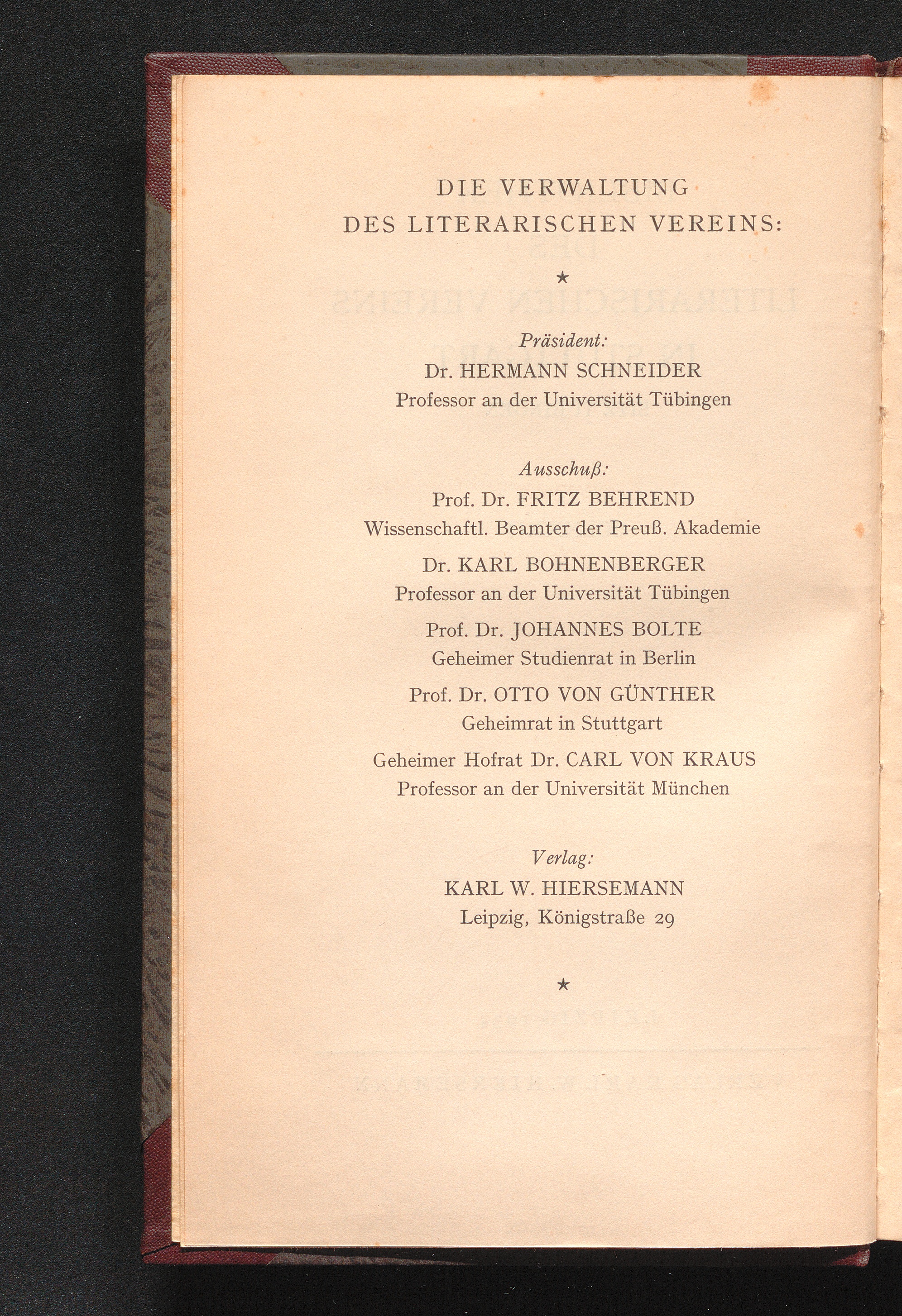 Die Verwaltung Des Literarischen Vereins:
