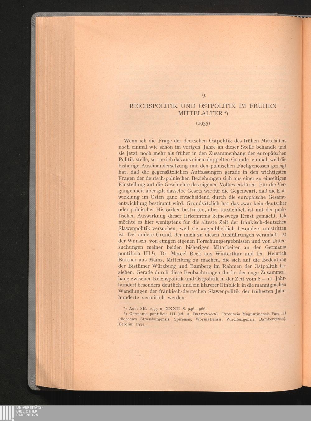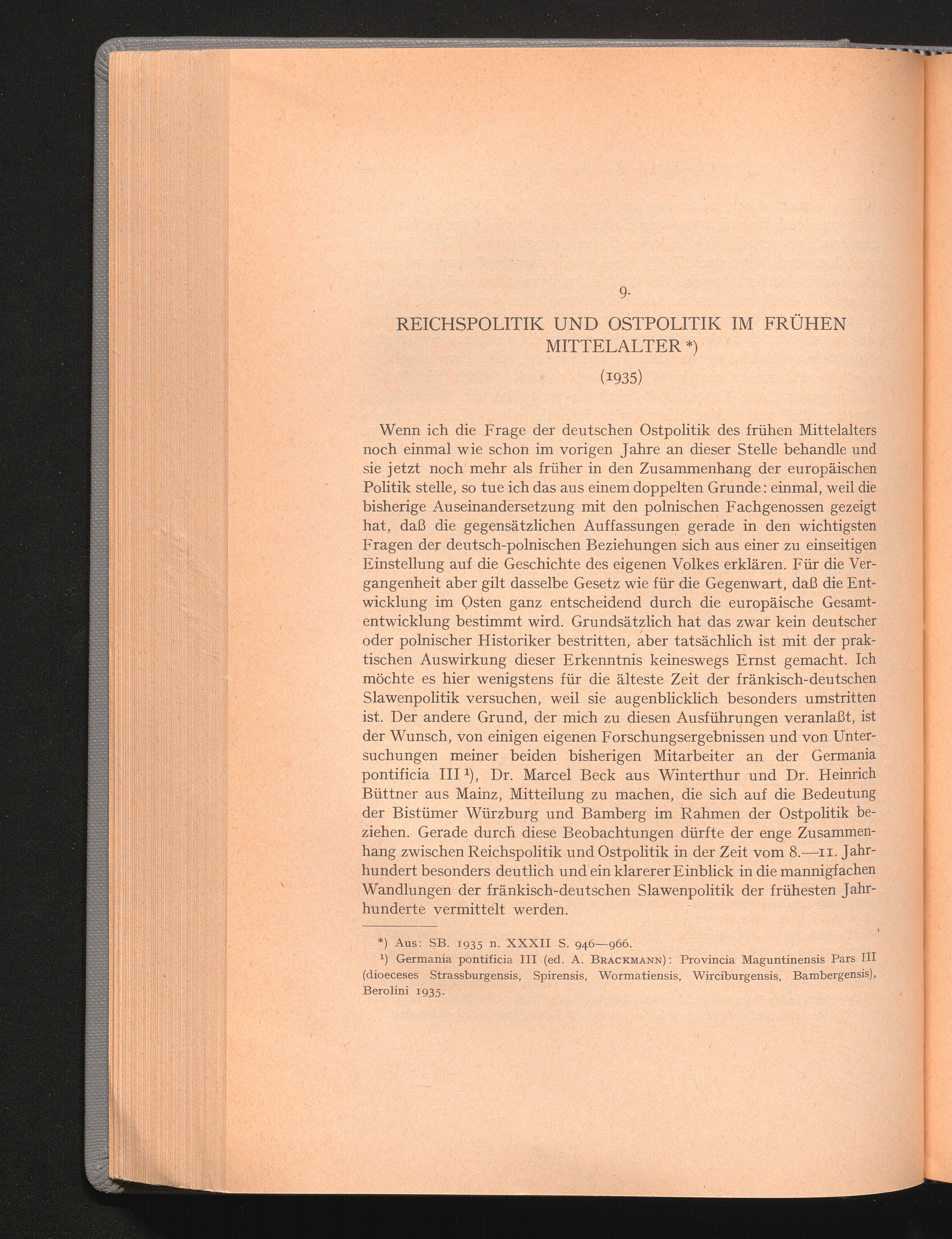 9. Reichspolitik und Ostpolitik im frühen Mittelalter (1935)