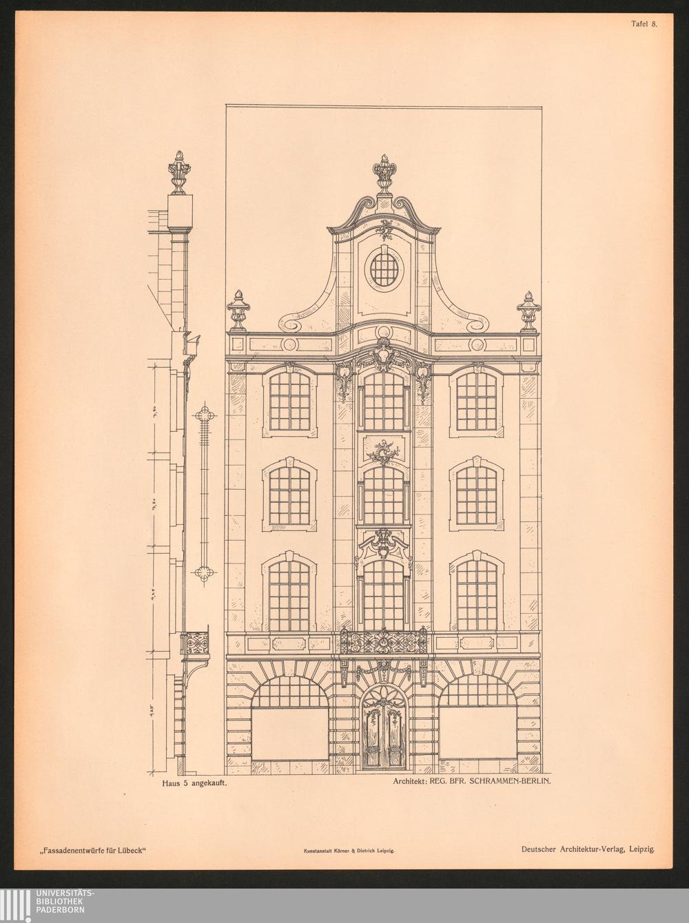 Tafel 8. Haus 5 angekauft. Architekt: Reg. Bfr. Schrammen - Berlin.