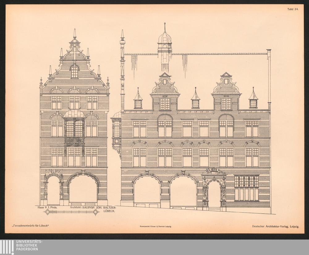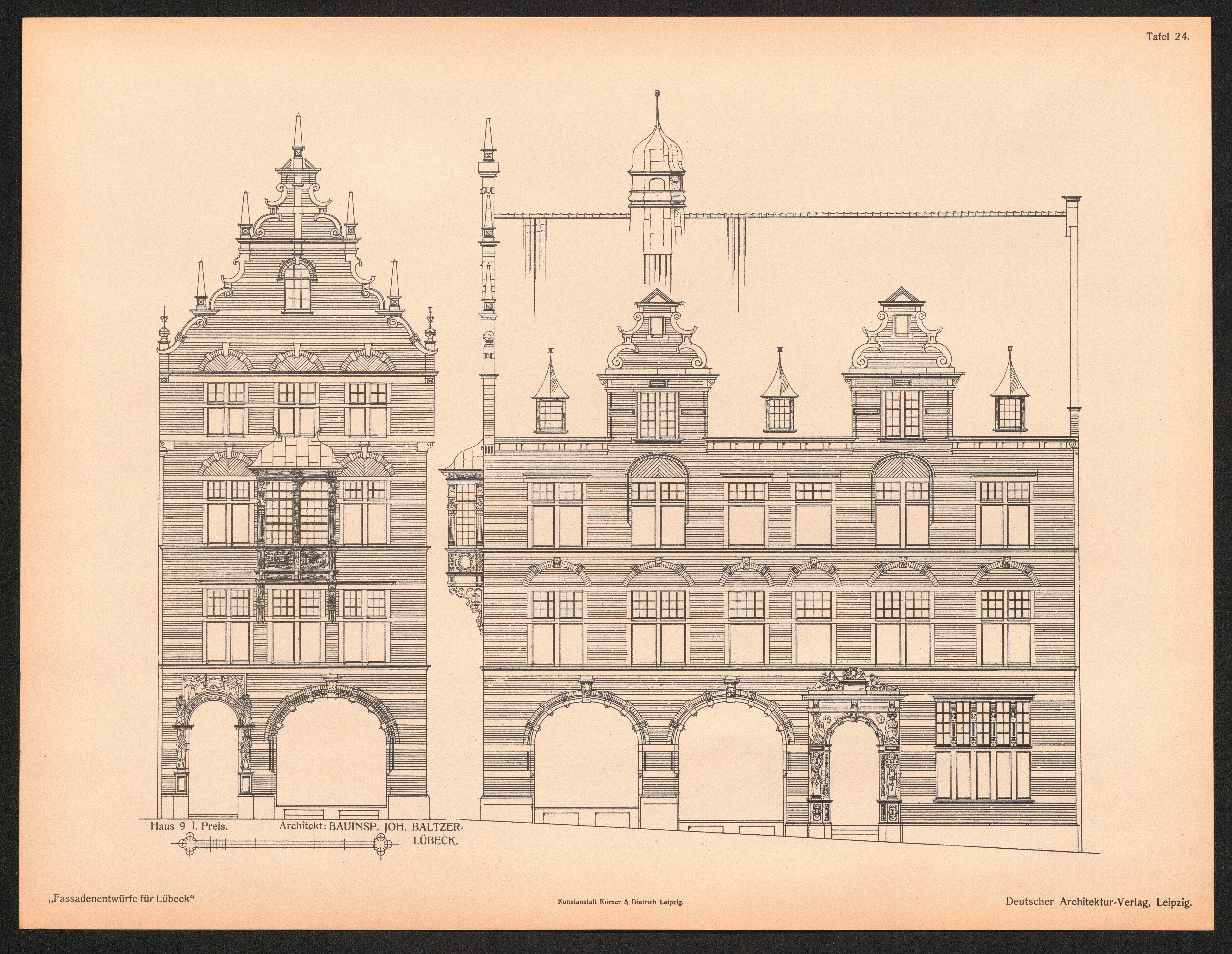 Tafel 24. Haus 9 I. Preis. Architekt: Bauinsp. Joh. Baltzer - Lübeck.