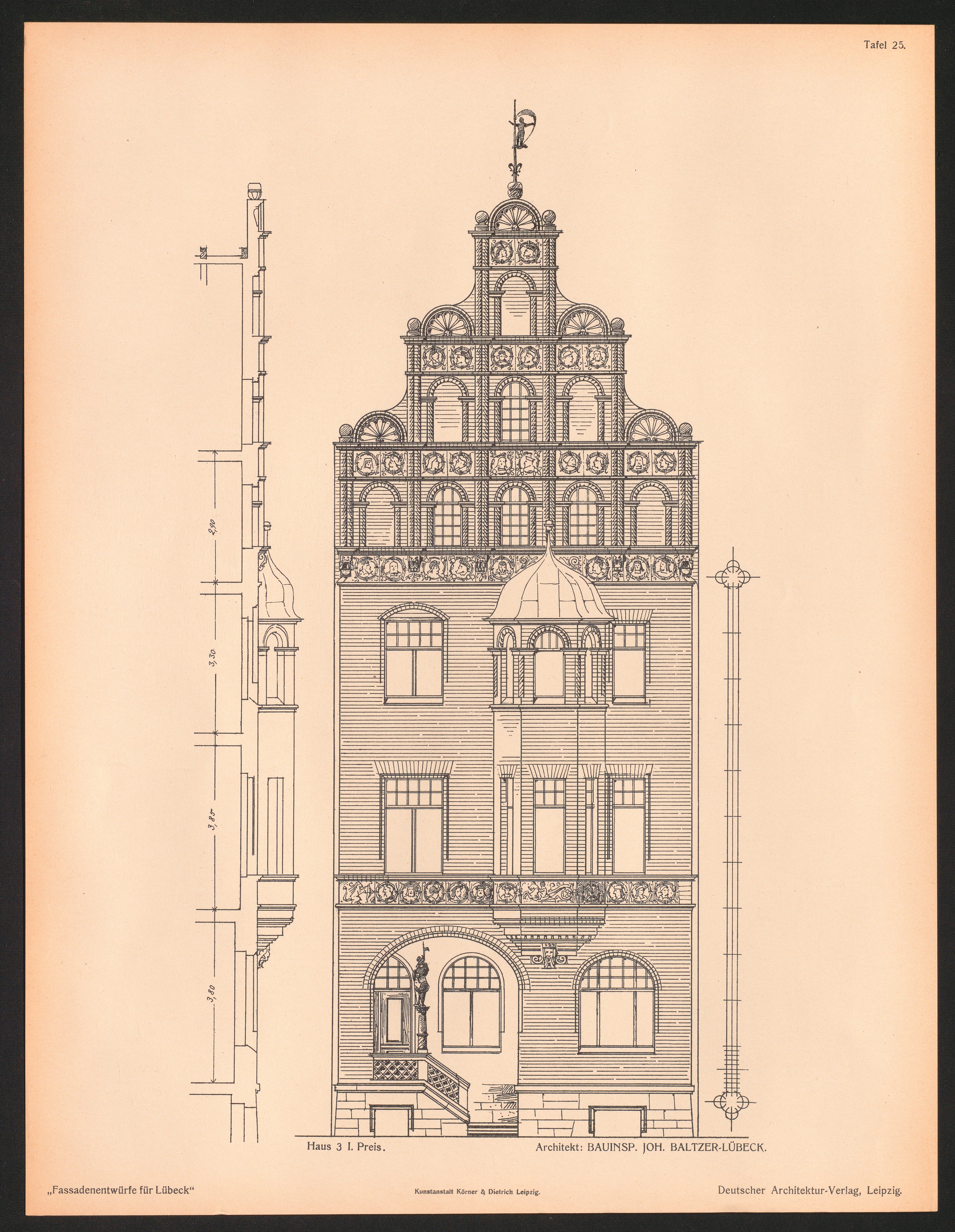Tafel 25. Haus 3 I. Preis. Architekt: Bauinsp. Joh. Baltzer - Lübeck.