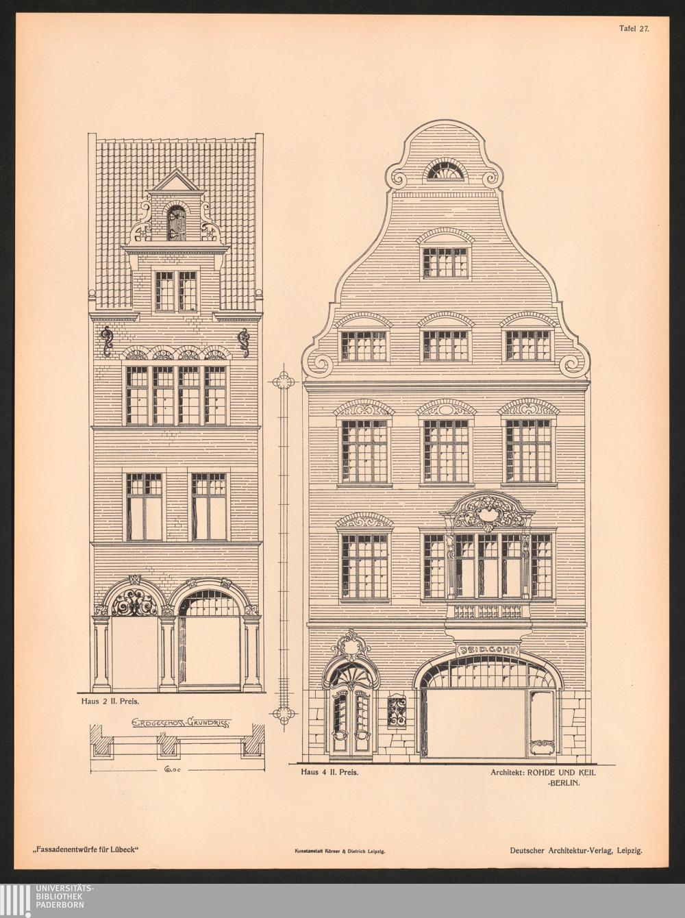 Tafel 27. Haus 2 II. Preis. Haus 4 II. Preis. Architekt: Rohde Und Keil - Berlin[...]
