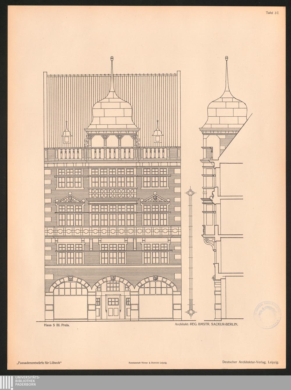 Tafel 37. Haus 5 III. Preis. Architekt: Reg. Bmstr. Sackur - Berlin.