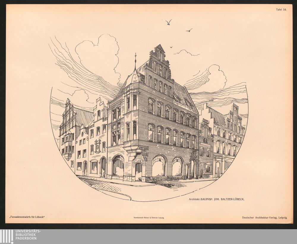 Tafel 38. Architekt: Bauinsp. Joh. Baltzer - Lübeck.