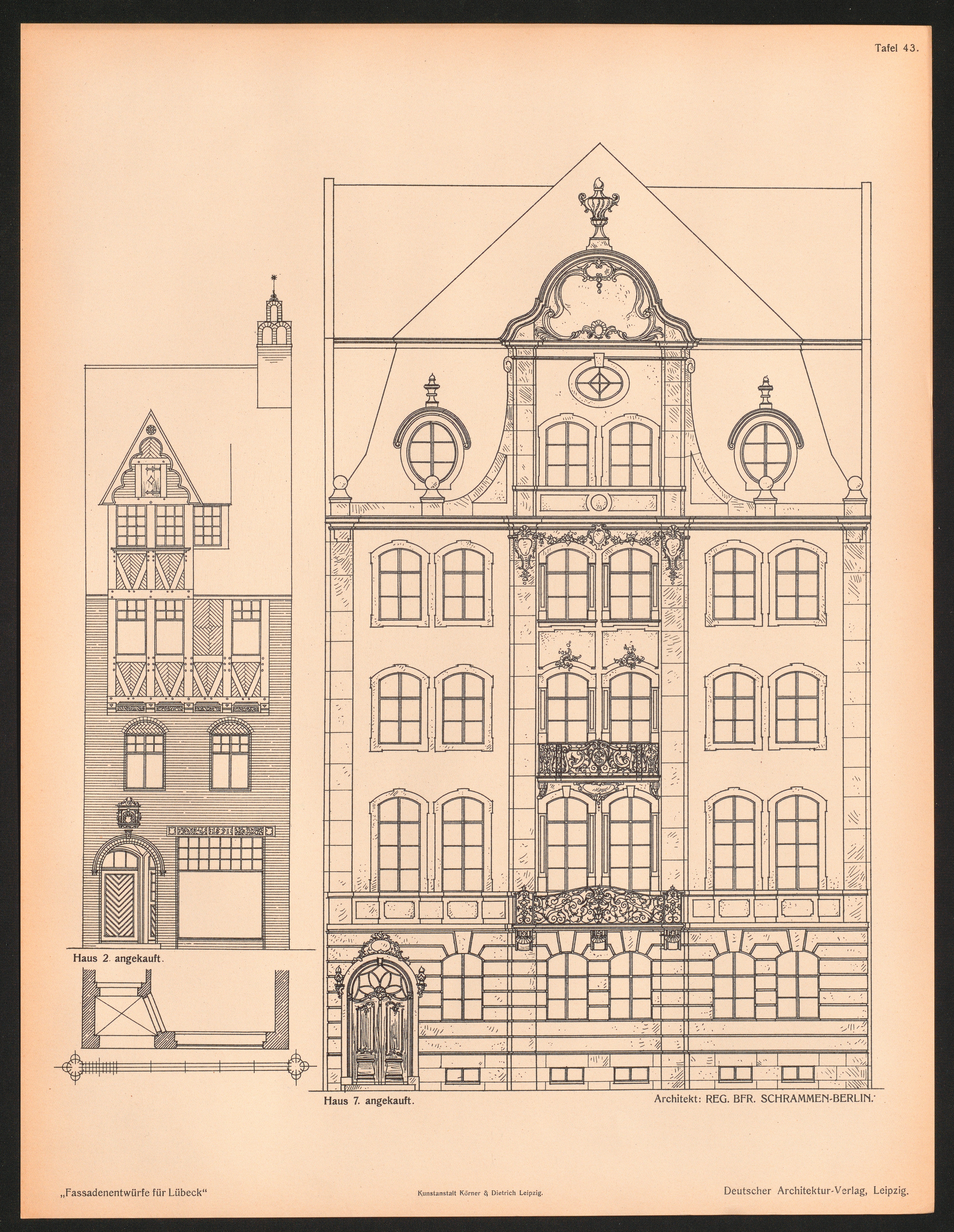 Tafel 43. Haus 2 angekauft. Haus 7. angekauft. Architekt: Reg. Bfr. Schrammen - [...]