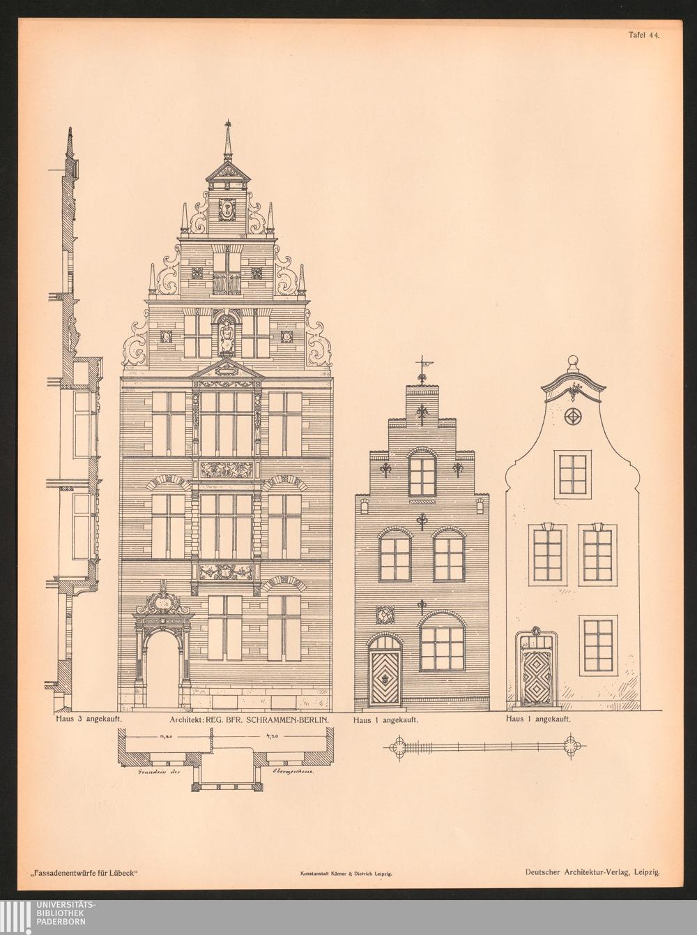 Tafel 44. Haus 3 angekauft. Haus 1 angekauft. Haus 1 angekauft. Architekt: Reg. Bfr.[...]