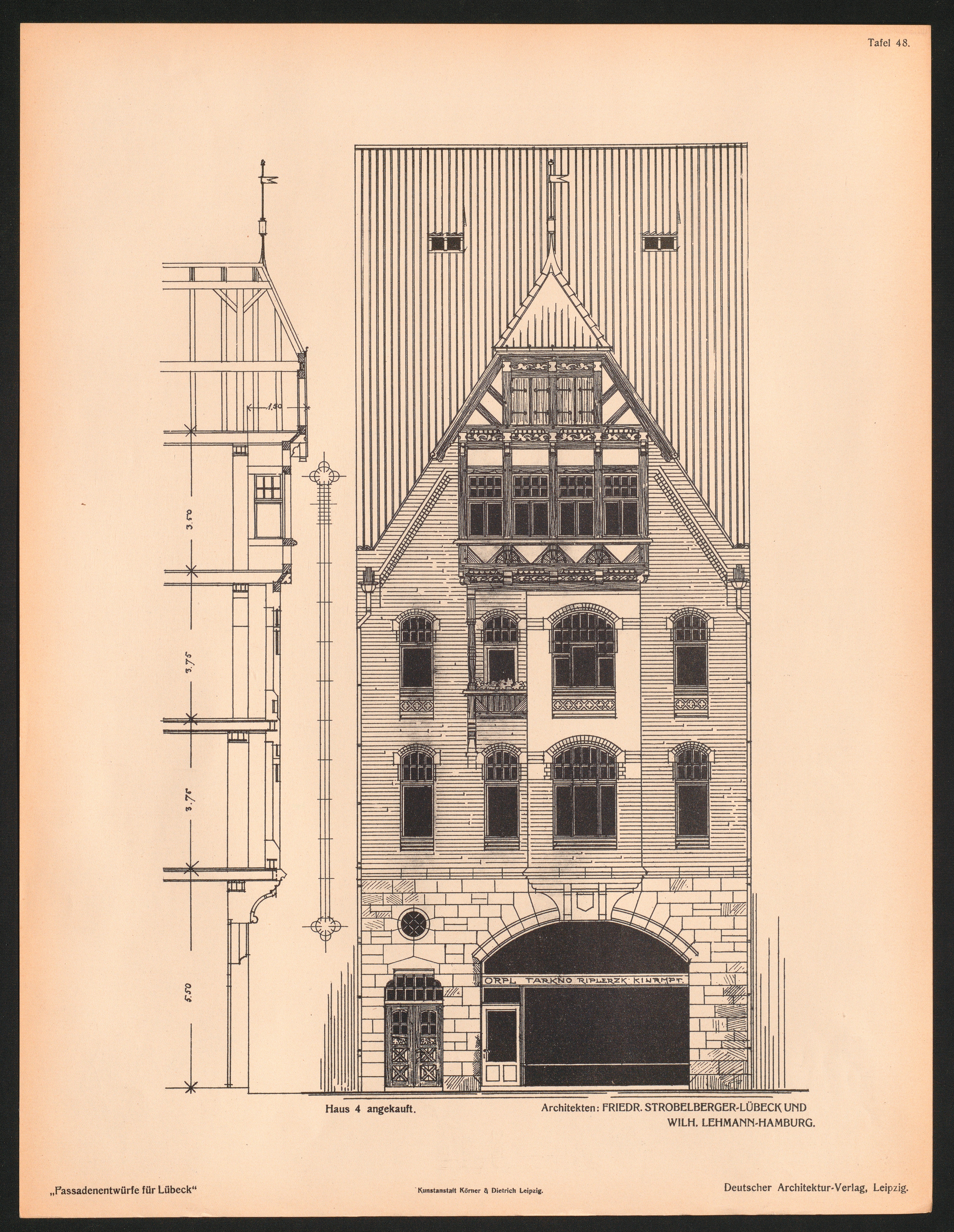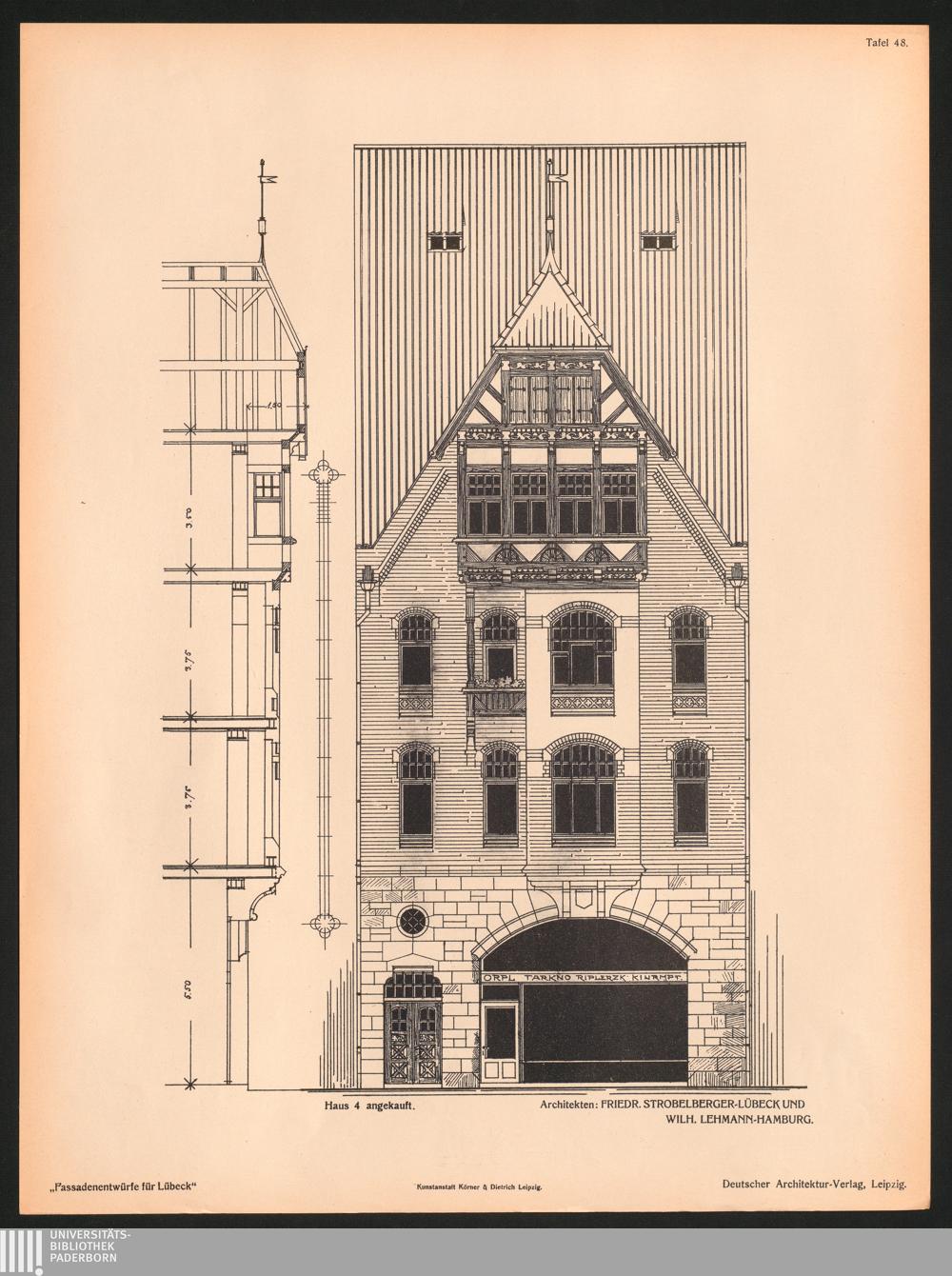 Tafel 48. Haus 4 angekauft. Architekten: Friedr. Strobelberger - Lübeck Und Wilh.[...]