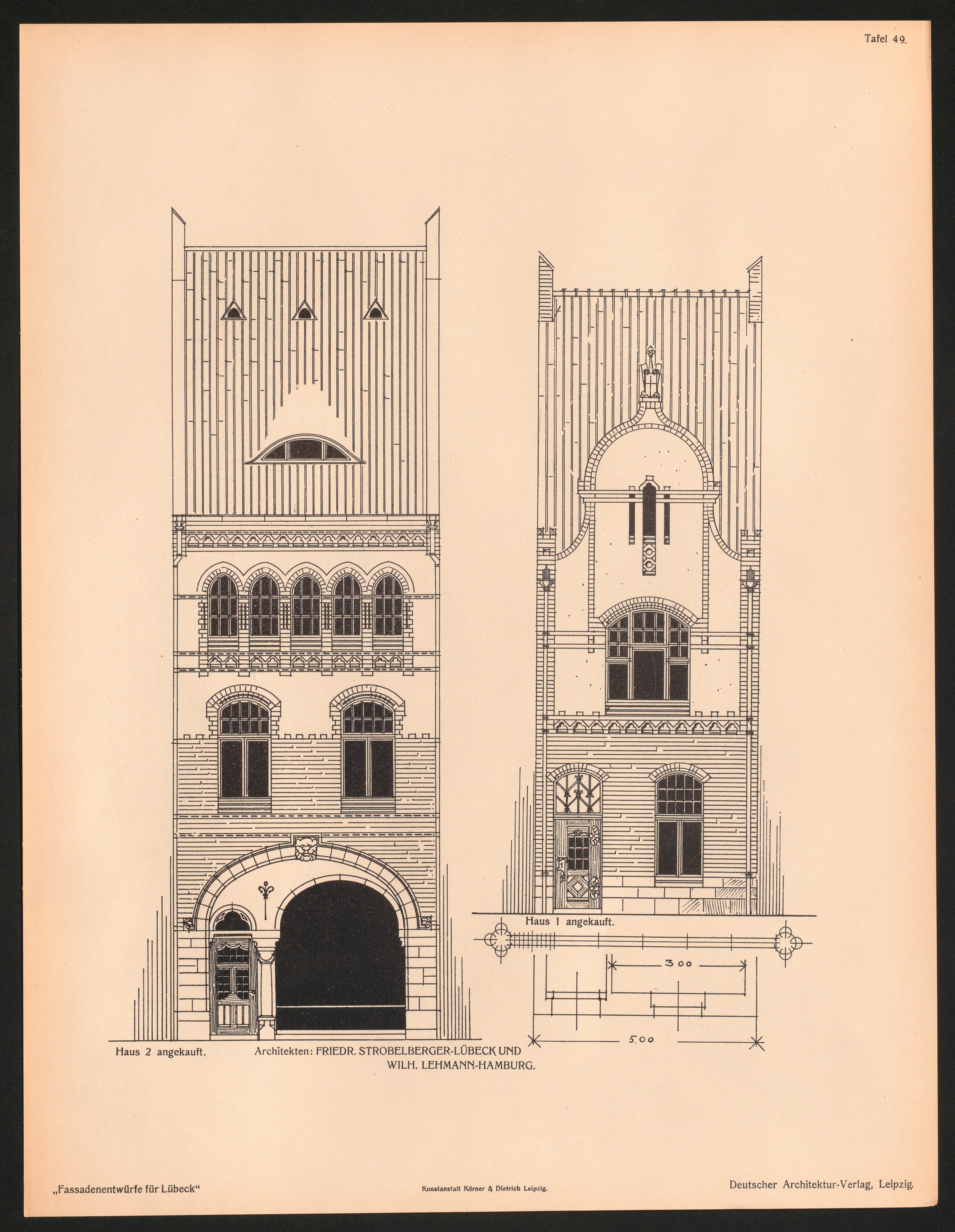 Tafel 49. Haus 2 angekauft. Architekten: Friedr. Strobelberger - Lübeck Und Wilh.[...]
