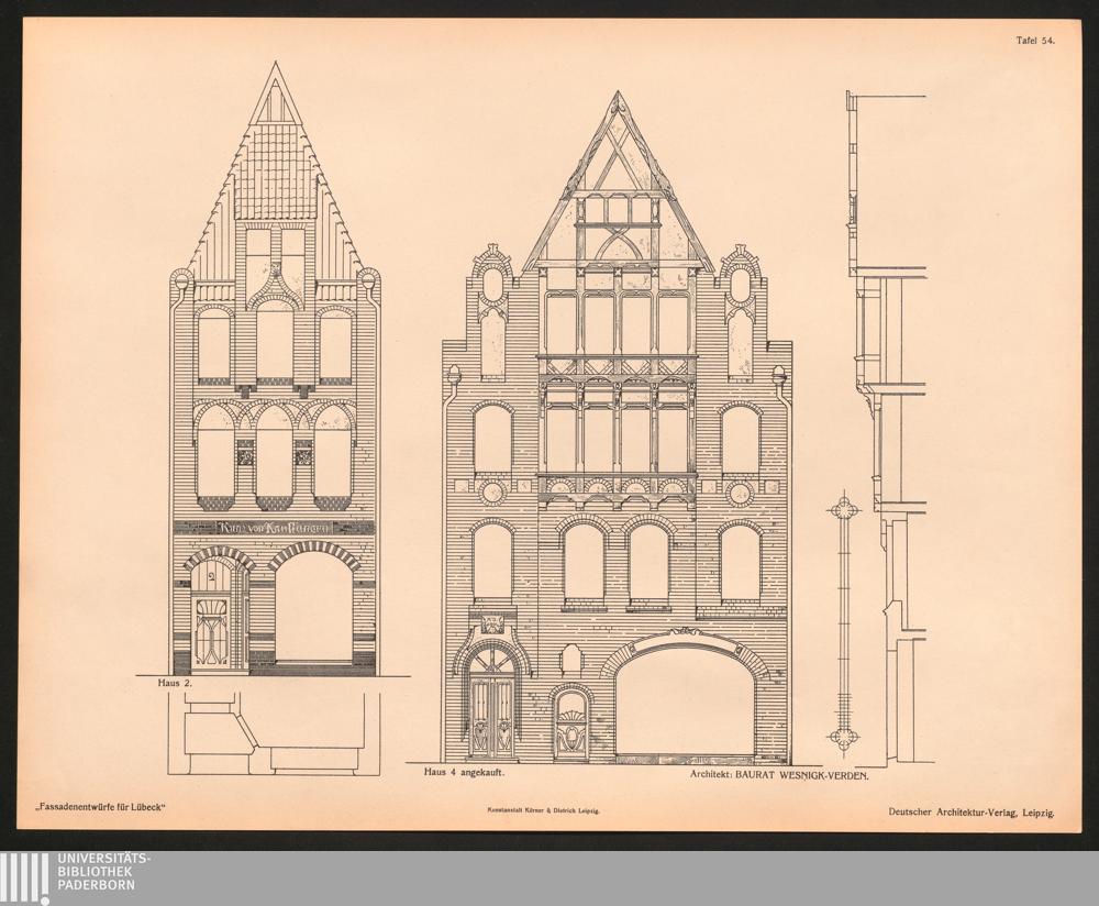 Tafel 54. Haus 2. Haus 4 angekauft. Architekt: Baurat Wesnigk - Verden.