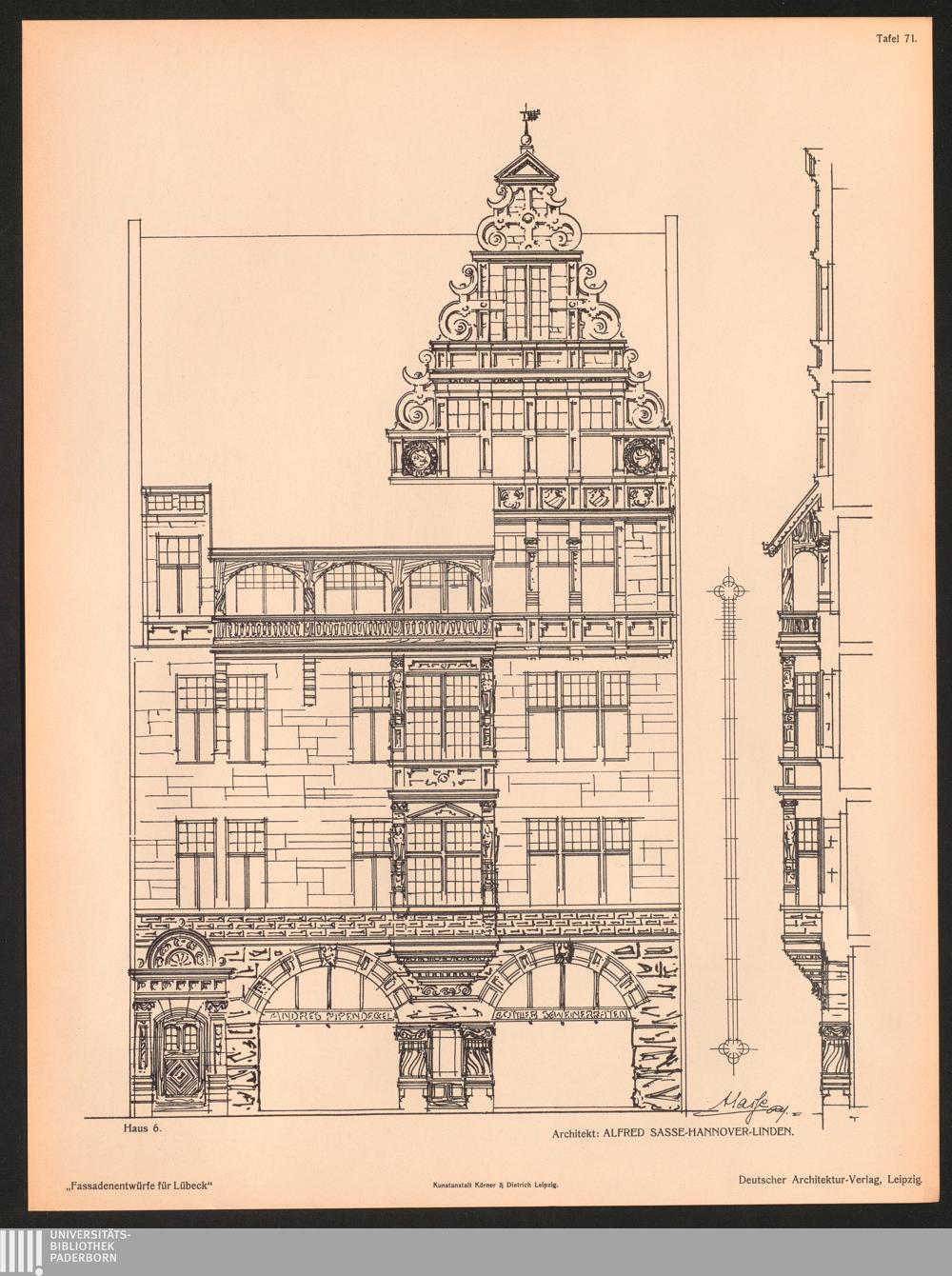 Tafel 71. Haus 6. Architekt: Alfred Sasse - Hannover-Linden.