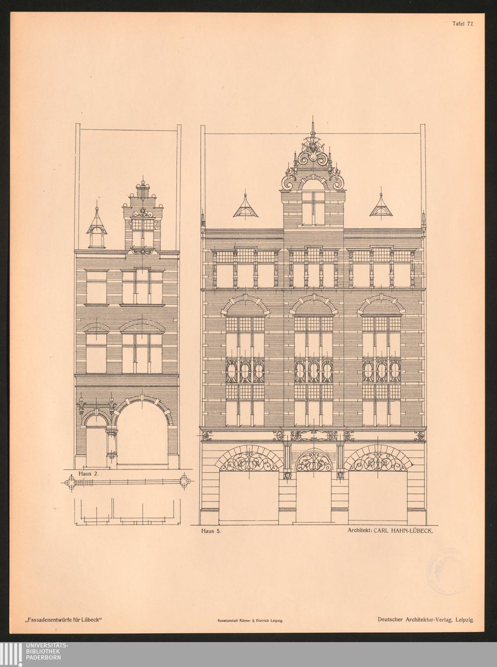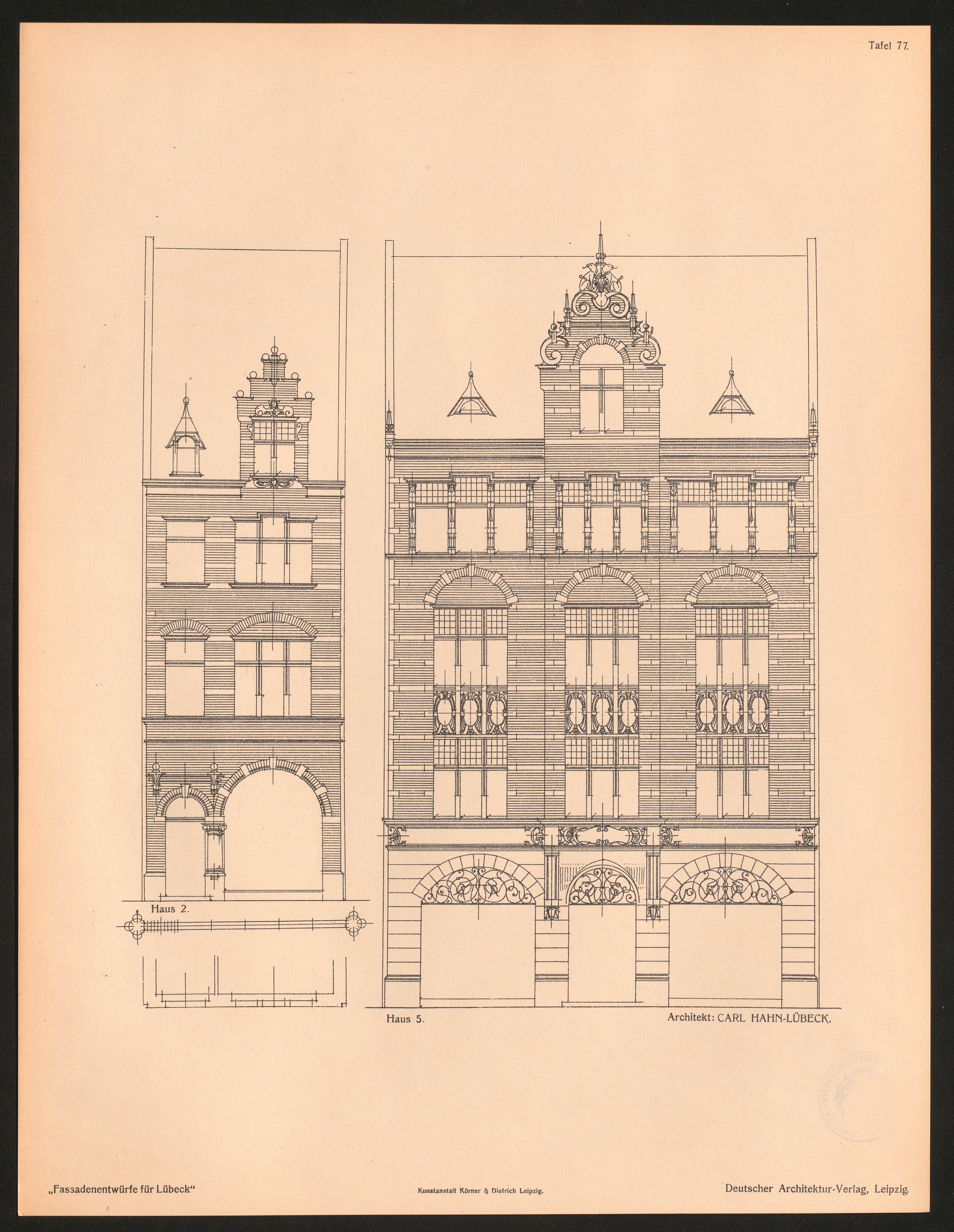 Tafel 77. Haus 2. Haus 5. Architekt: Carl Hahn - Lübeck.