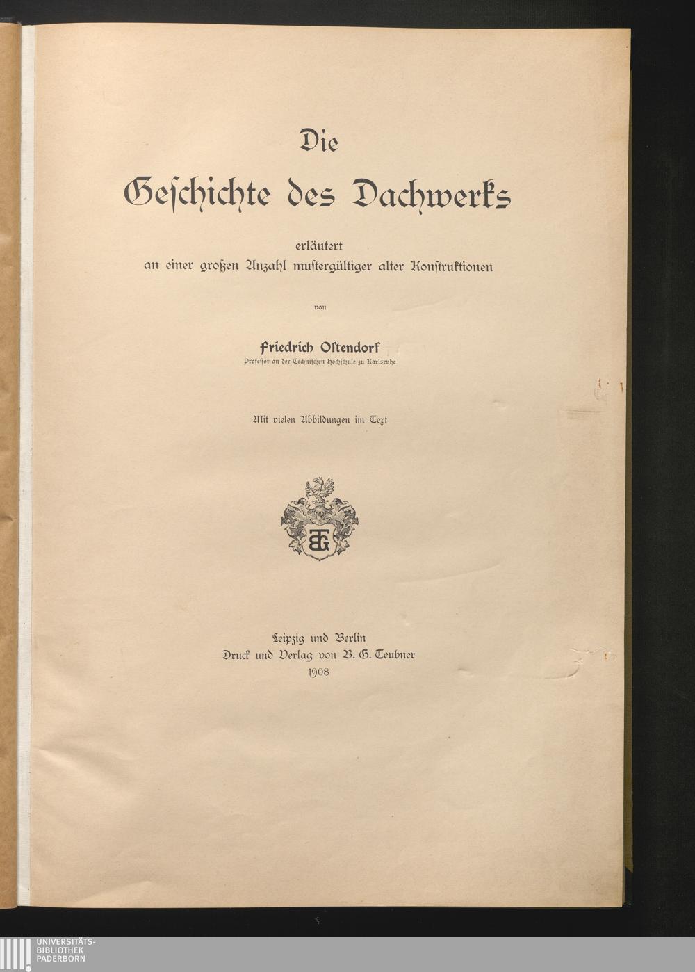 Die Geschichte des Dachwerks : erläutert an einer großen Anzahl mustergültiger alter Konstruktionen / von Friedrich Ostendorf