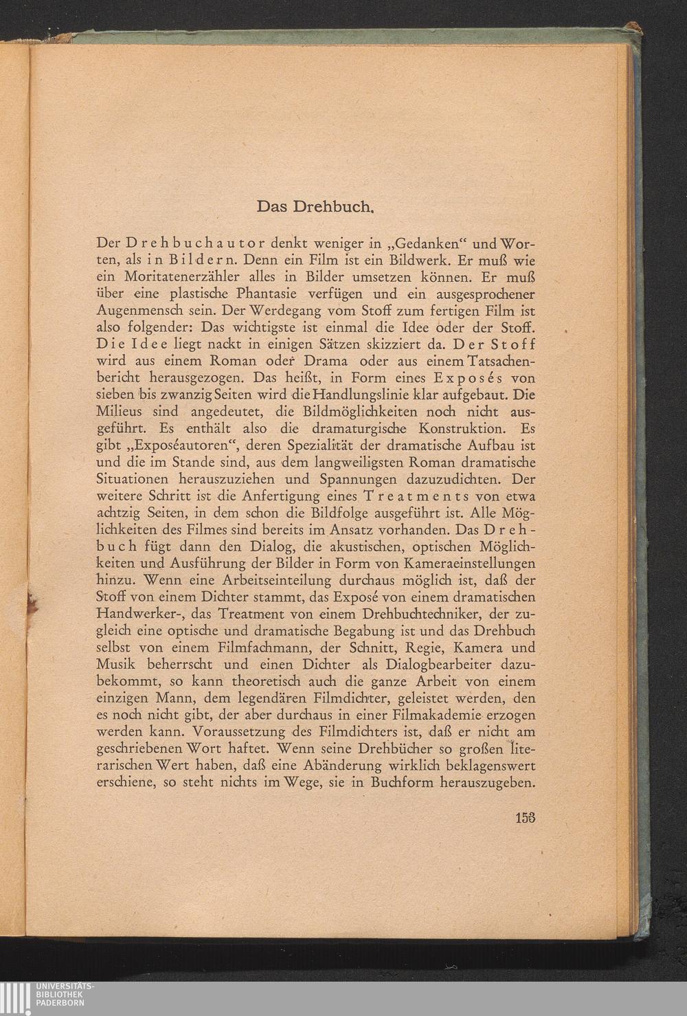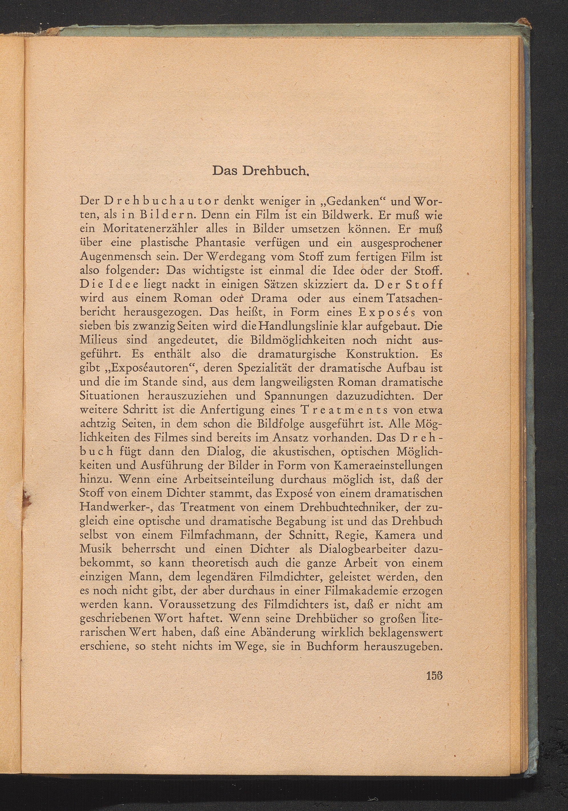 Film und Dichtung. Zeitlich fortschreitende Mitteilungen - Rhytmus des Films - Vorrang der Dichtung - Begleitstellung der Musik - Umgekehrte Bewertung - Ruf nach dem Dichter - In Bildern denken - Dichter und Journalisten beim Film - Die Erziehung zum Dichter - Kino und Unterhaltung - Der Dilettant - Dramatiker Erzieher des Volkes - Mißachtung des Könnens - Einstellung der Dichter zum Film - Geschäftlicher Standpunkt - Niedrige Qualität der dramatischen Durchschnittsproduktion - Der Deutsche nicht ...