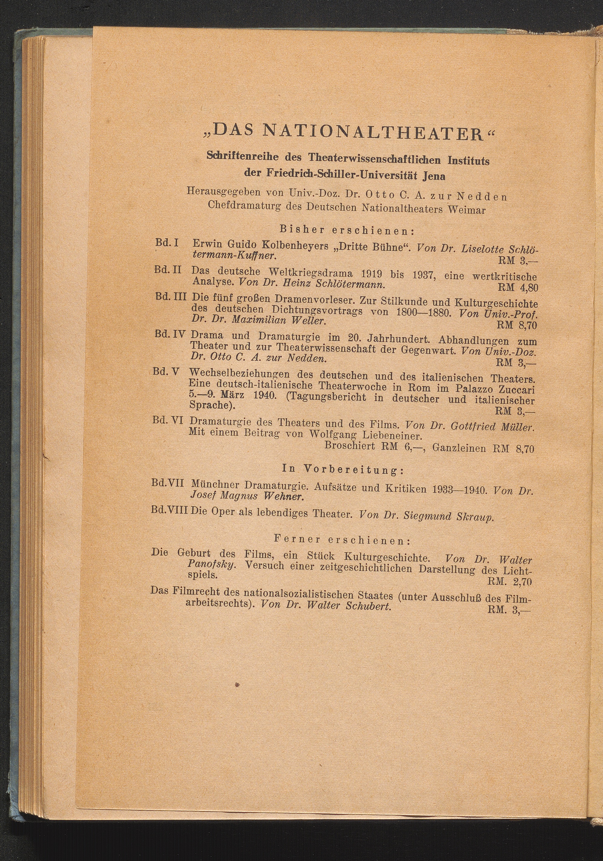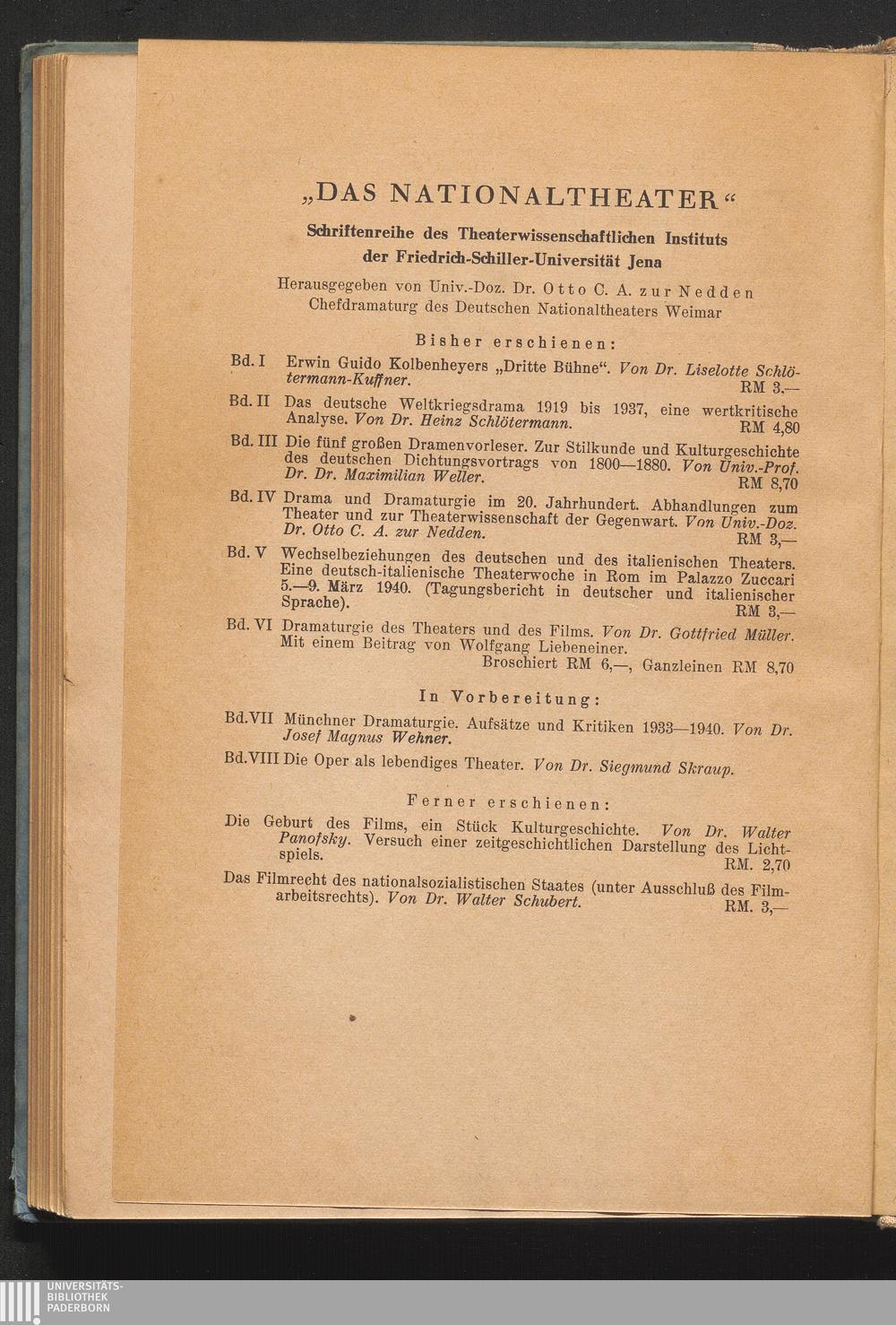 Bibliographie. Übersicht über das dramaturgische Schrifttum - Dramaturgien - Theoretische Schriften - Lehrbücher - Dichter über ihre eigene Methode - Französiche Dramaturgien - Englische Handbücher - Filmschrifttum - Filmdramaturgien.