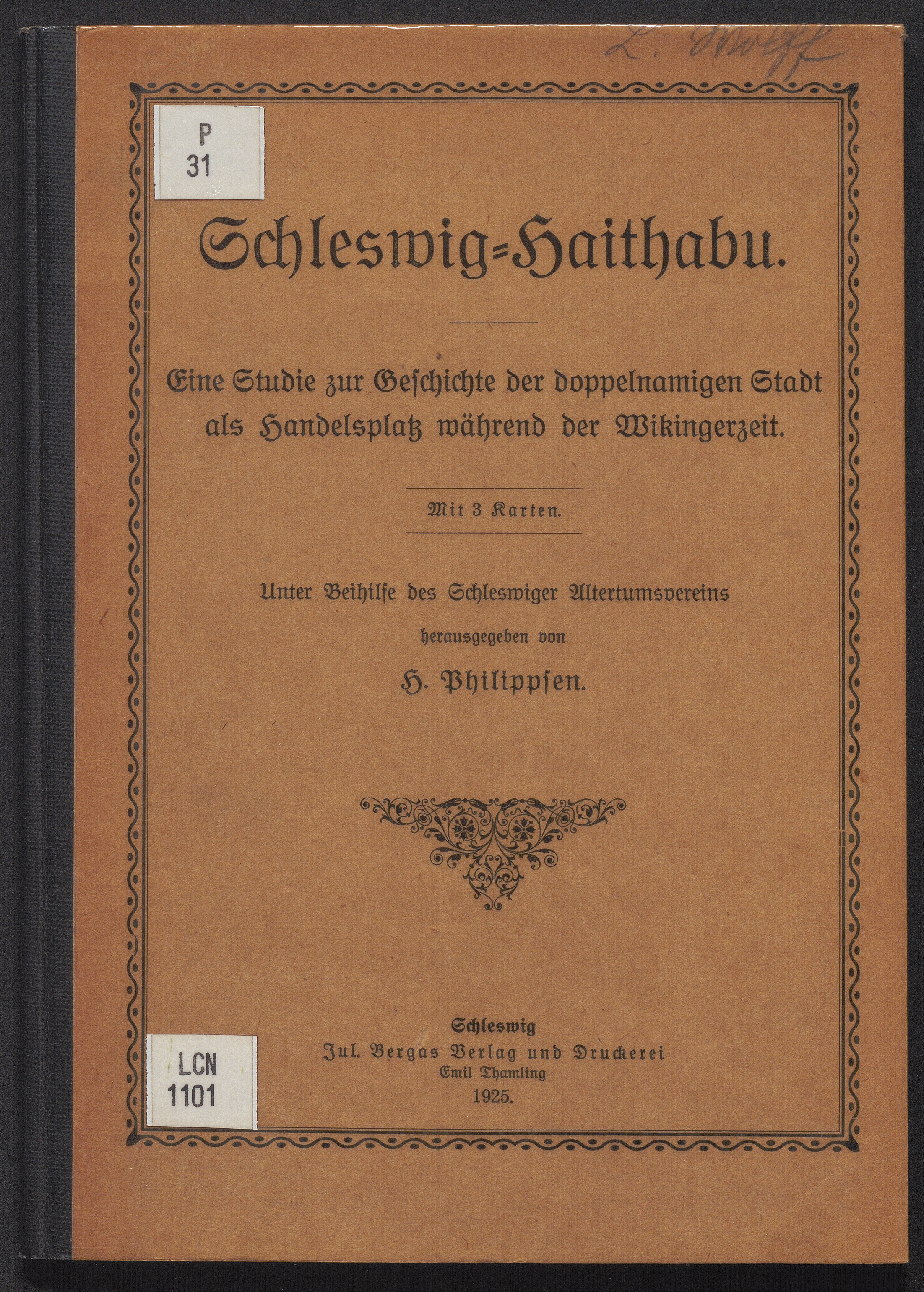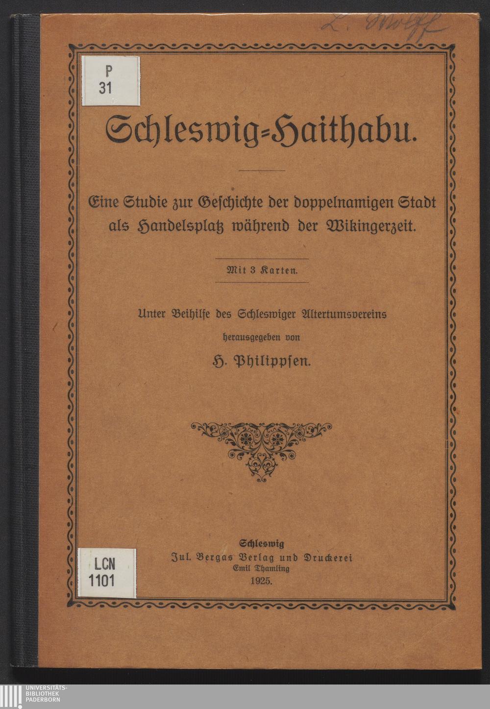 Schleswig-Haithabu : eine Studie zur Geschichte der doppelnamigen Stadt als Handelsplatz während der Wikingerzeit / unter Beihilfe des Schleswiger Altertumsvereins hrsg. von Heinrich Philippsen