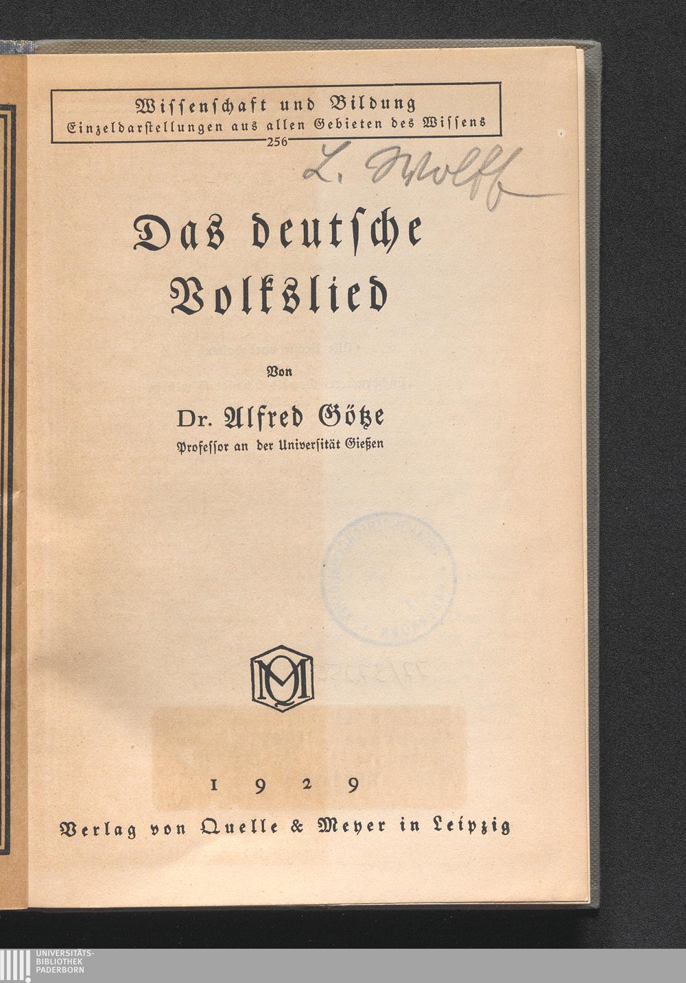 Das deutsche Volkslied / von Alfred Götze
