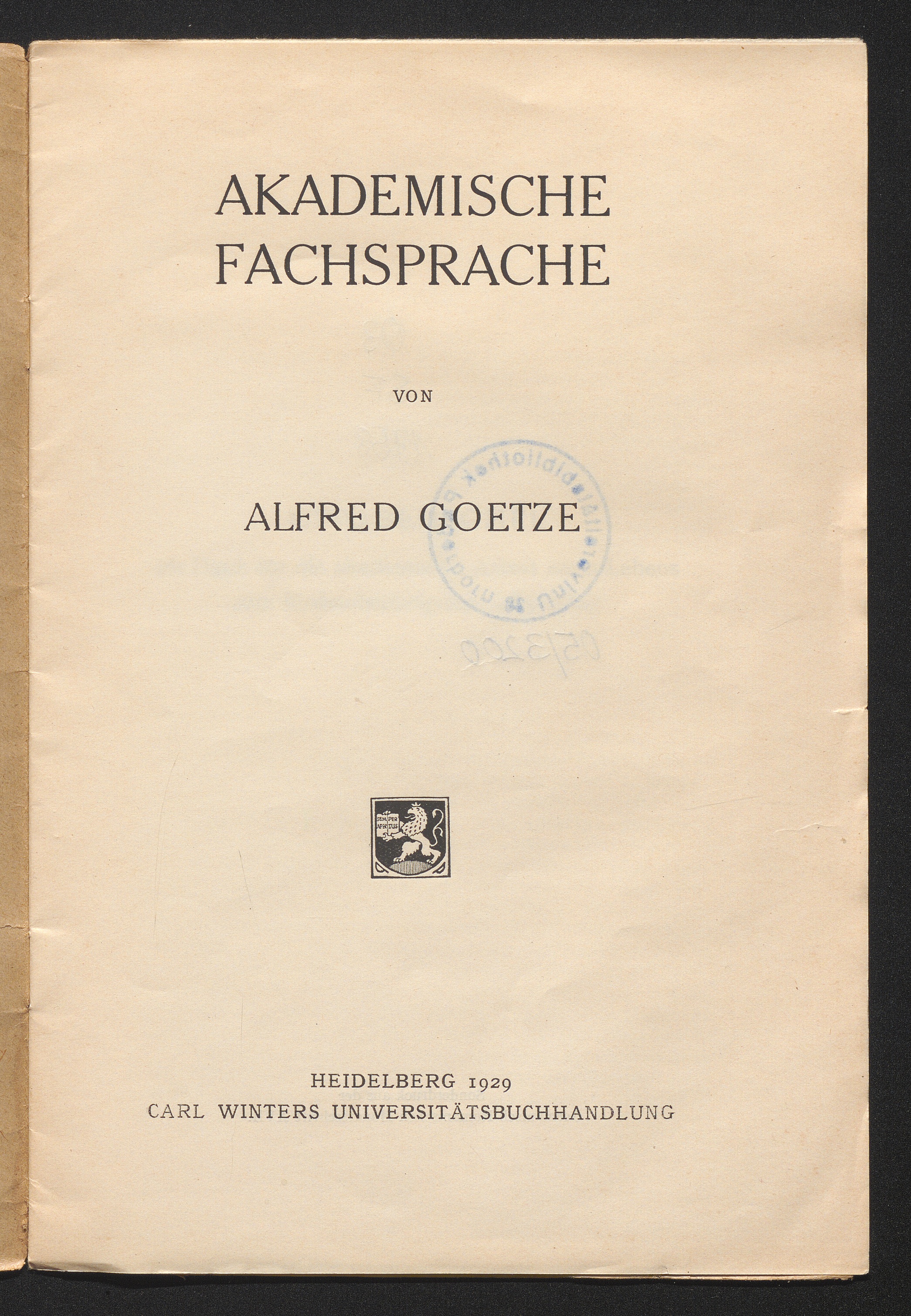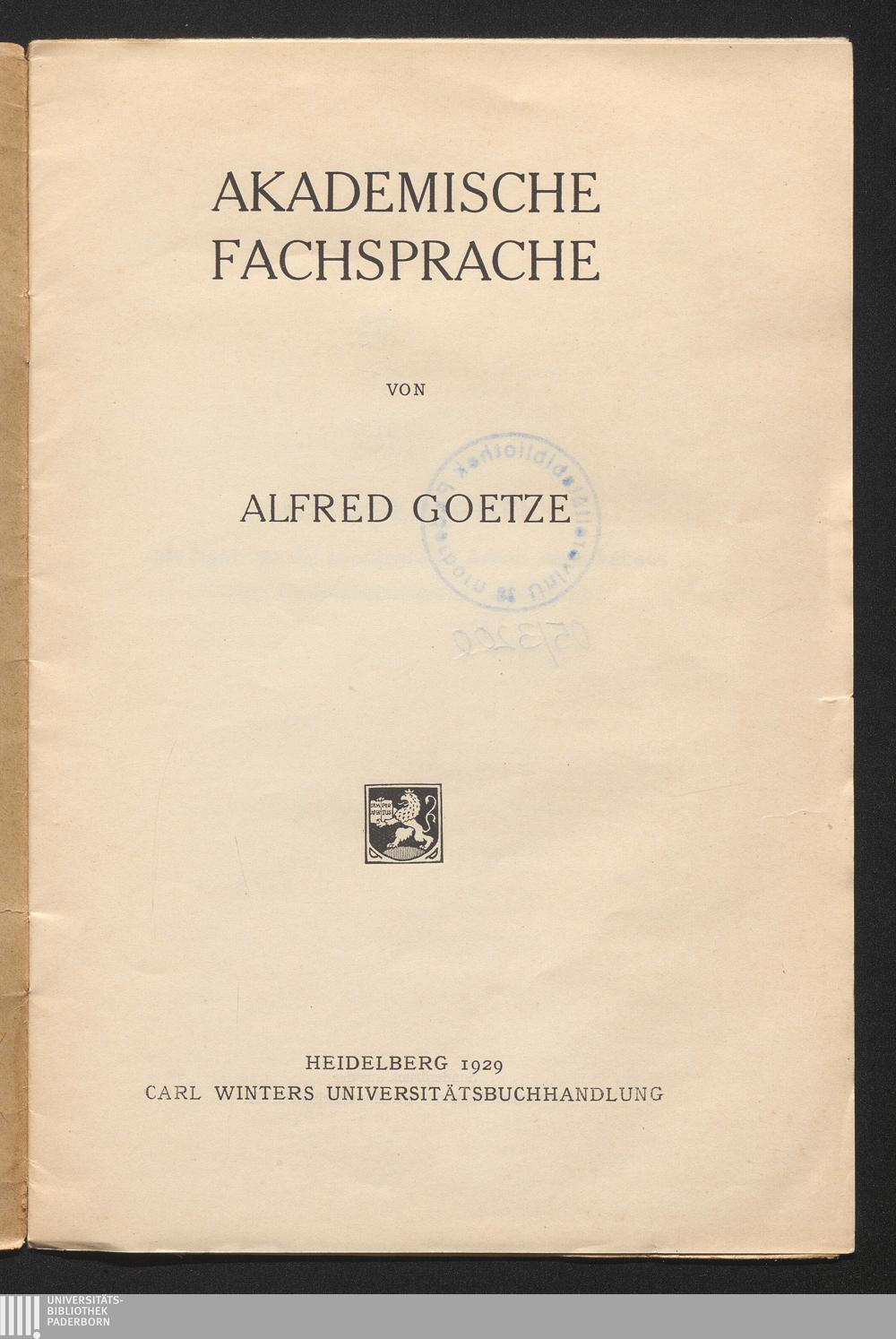 Akademische Fachsprache / Alfred Götze