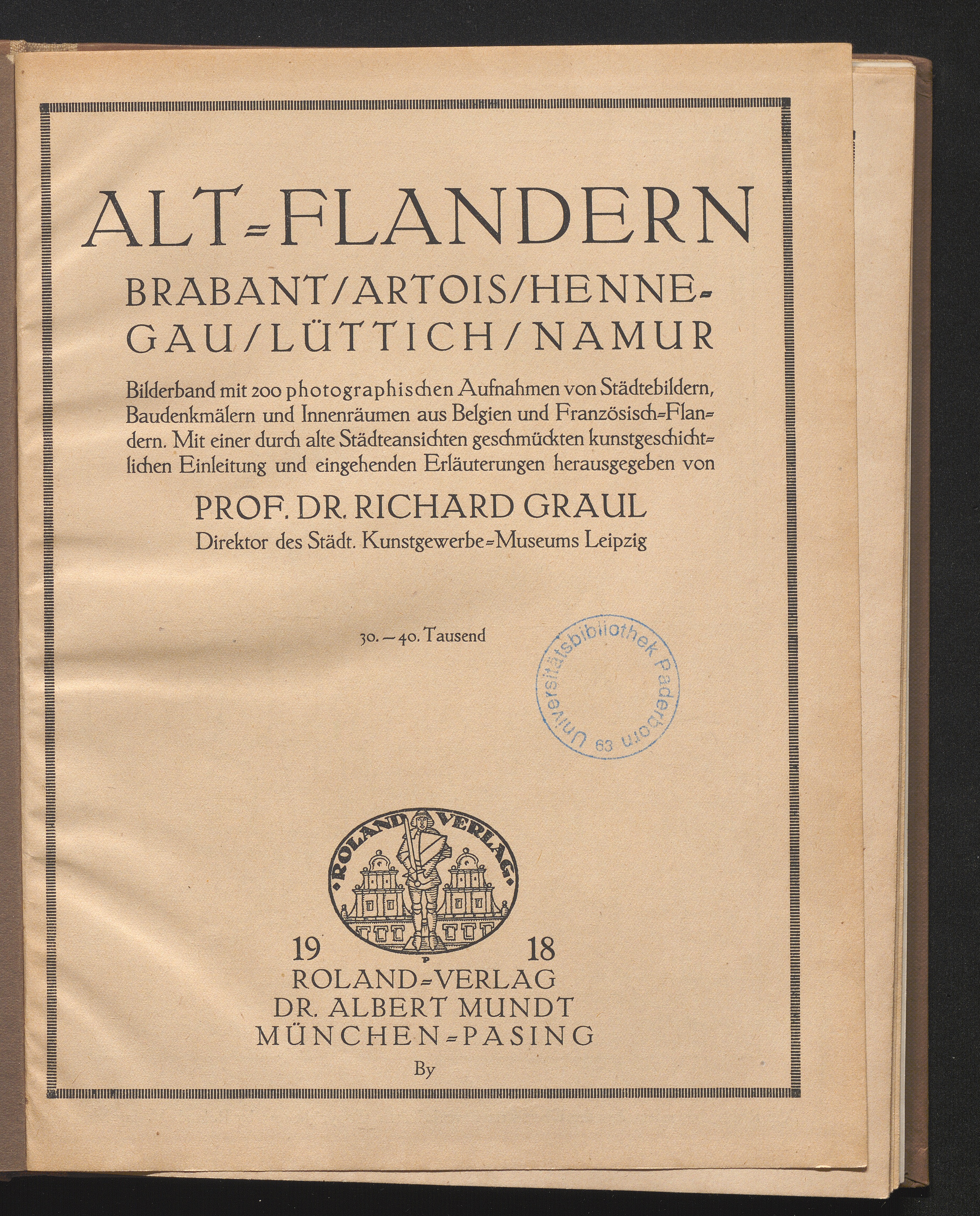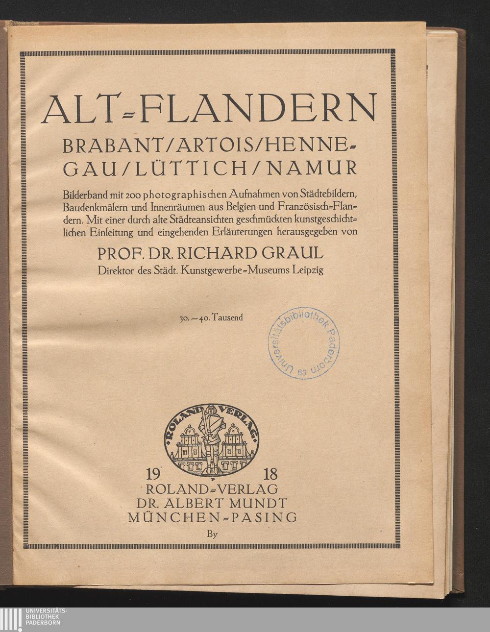 Alt-Flandern : Brabant, Artois, Hennegau, Lüttich, Namur ; Bilderband mit 200 photographischen Aufnahmen von Städtbildern, Baudenkmälern und Innenräumen aus Belgien und Französisch-Flandern ; mit einer durch alte Städteansichten geschnückten kunstgeschichtlichen Einleitung und eingehenden Erläuterungen / hrsg. von Richard Graul