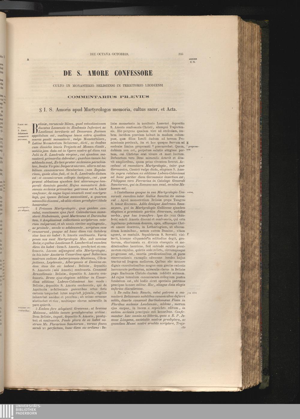 De S. Amore Confessore Culto In Monasterio Belisiensi In Territorio Leodiénsi Commentarius[...]