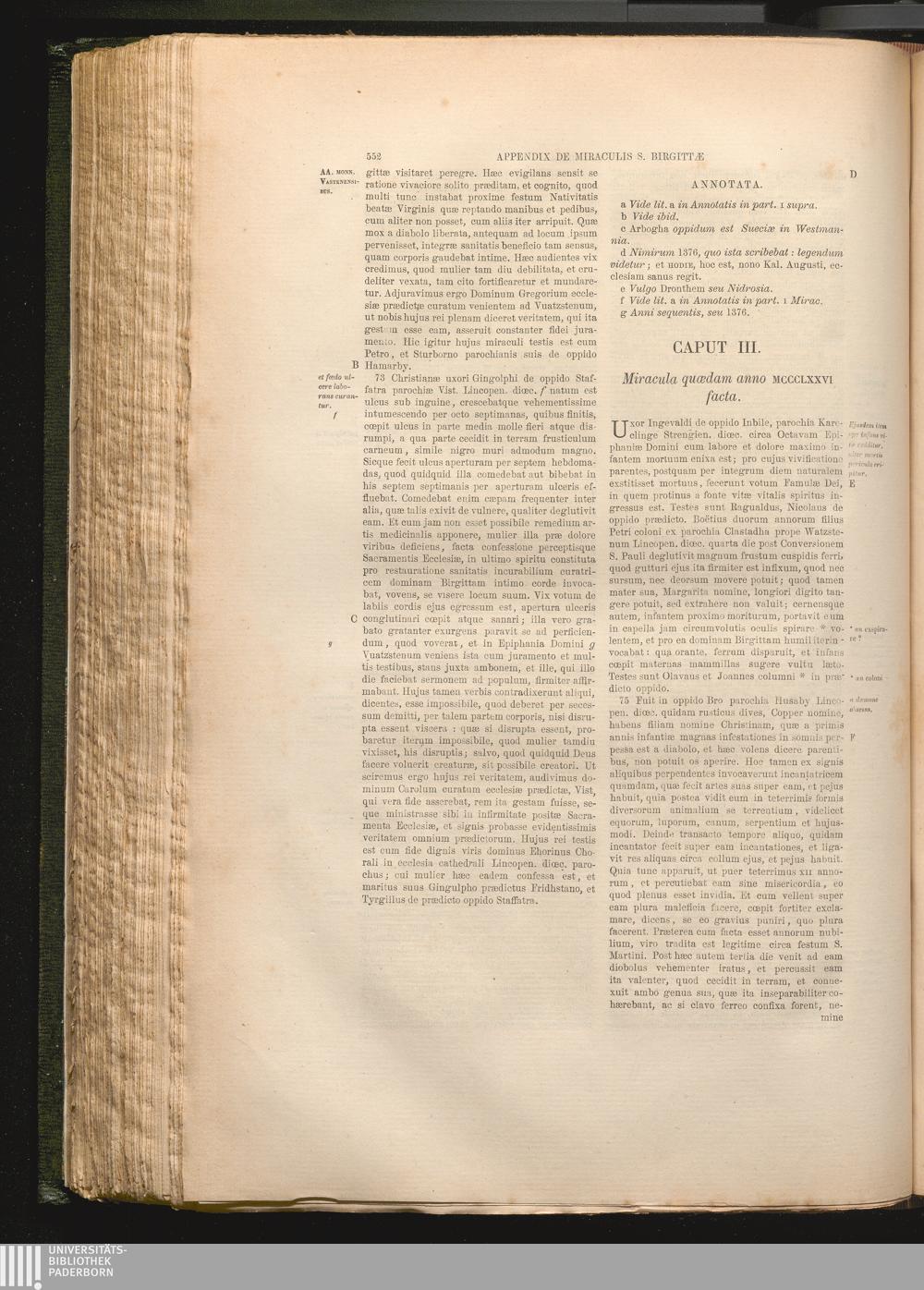 Appendix De Miraculis S. Birgittæ.
