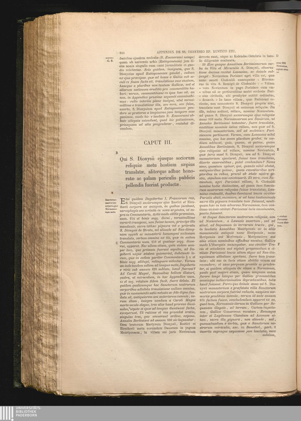 Caput III. Qui S. Dionysii ejusque sociorum reliquiæ metu hostium sæpius translatæ,[...]