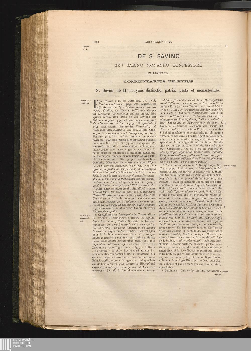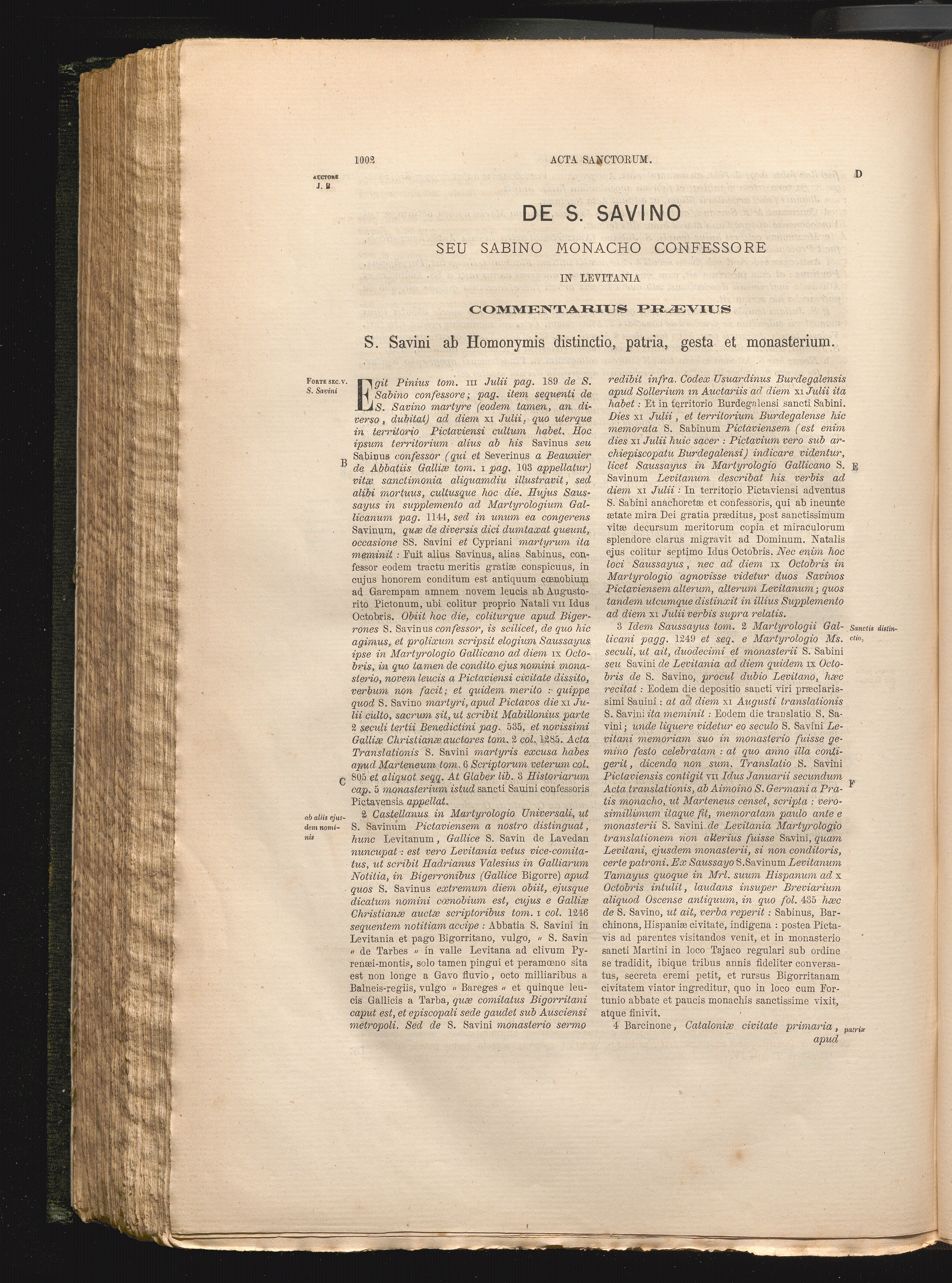 De S. Savino Seu Sabino Monacho Confessore In Levitania Commentarius Prævius S. Savini[...]