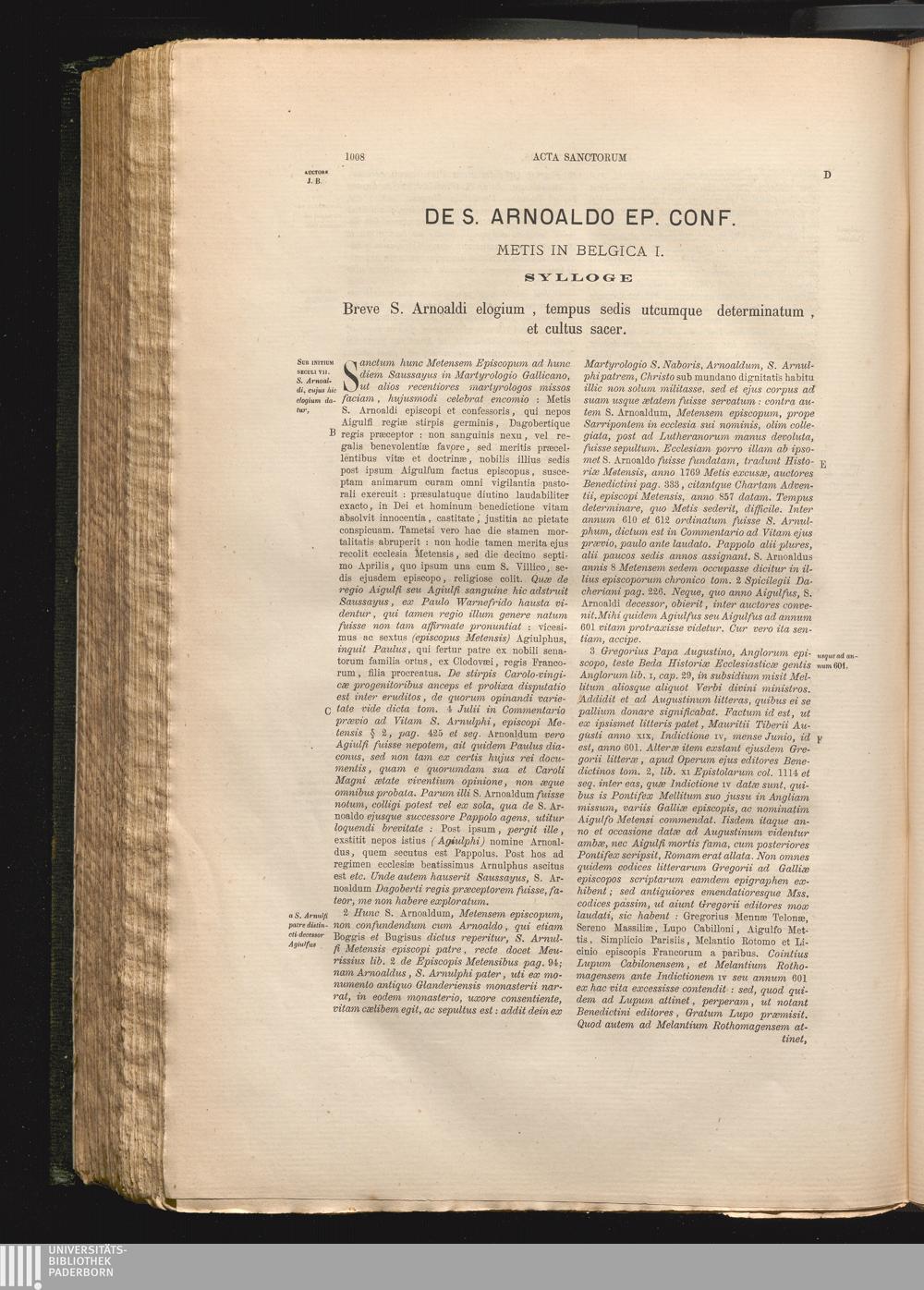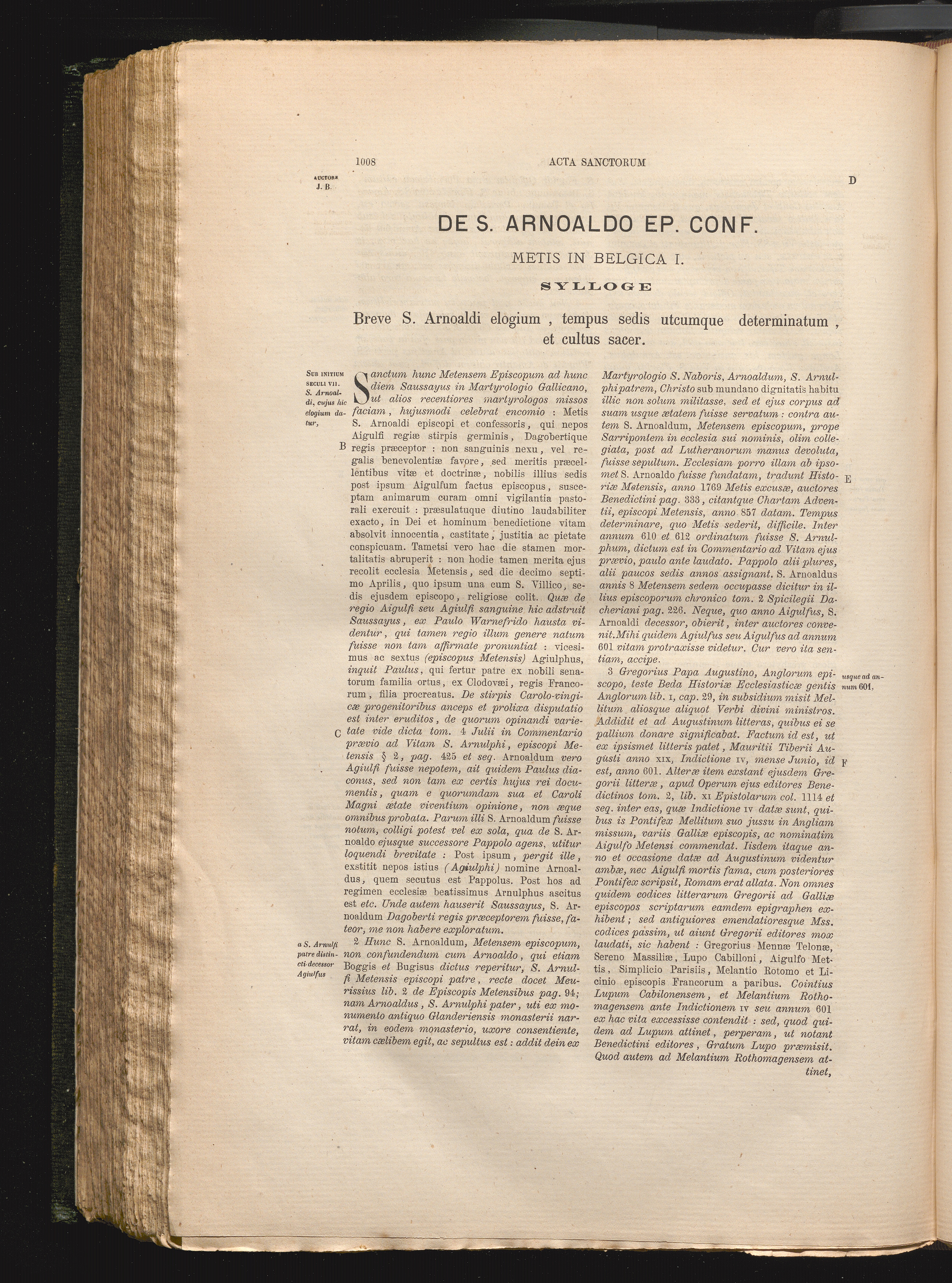 De S. Arnoaldo Ep. Conf. Metis In Belgica I. Sylloge Breve S. Arnoaldi elogium, tempus[...]