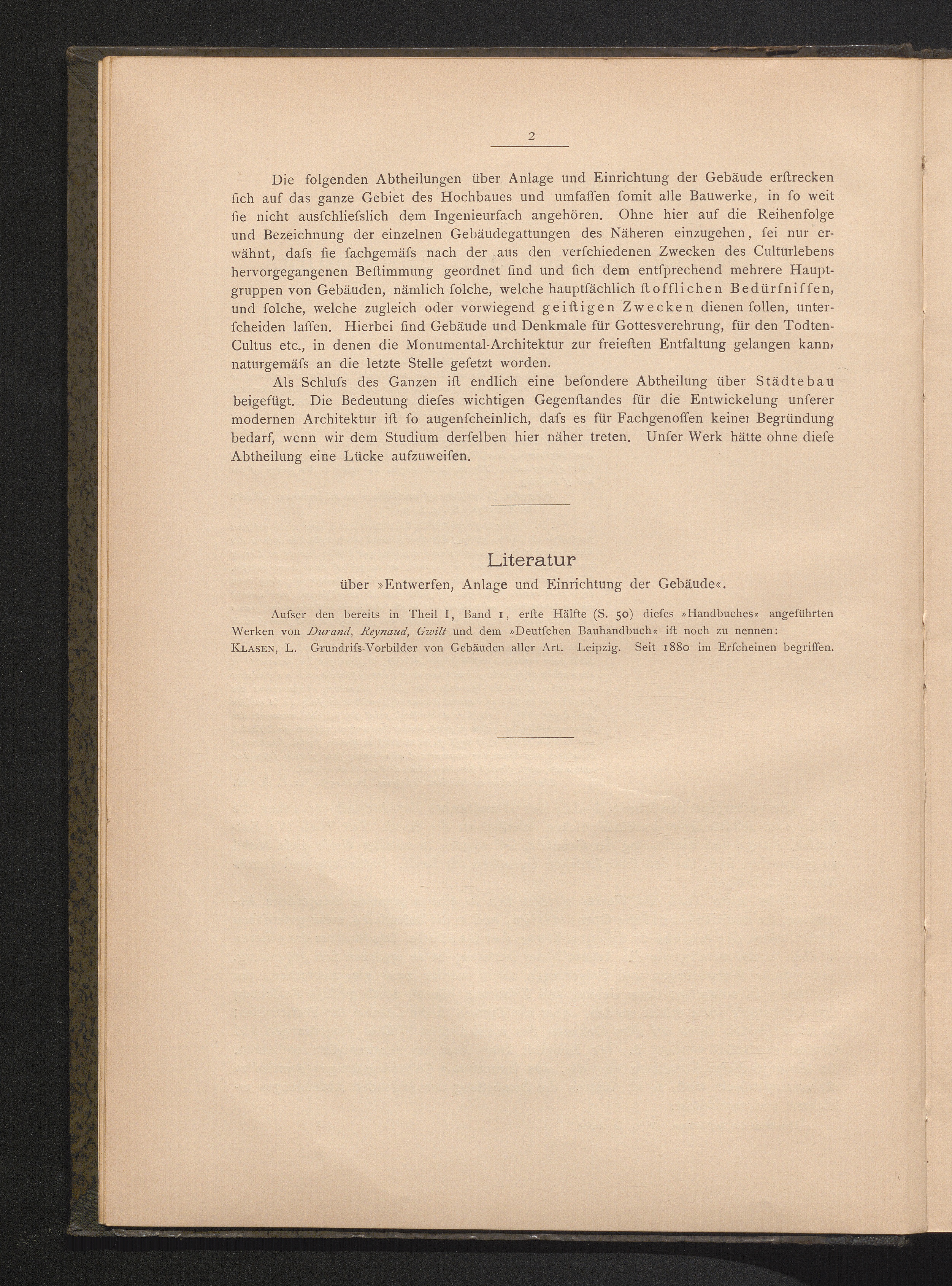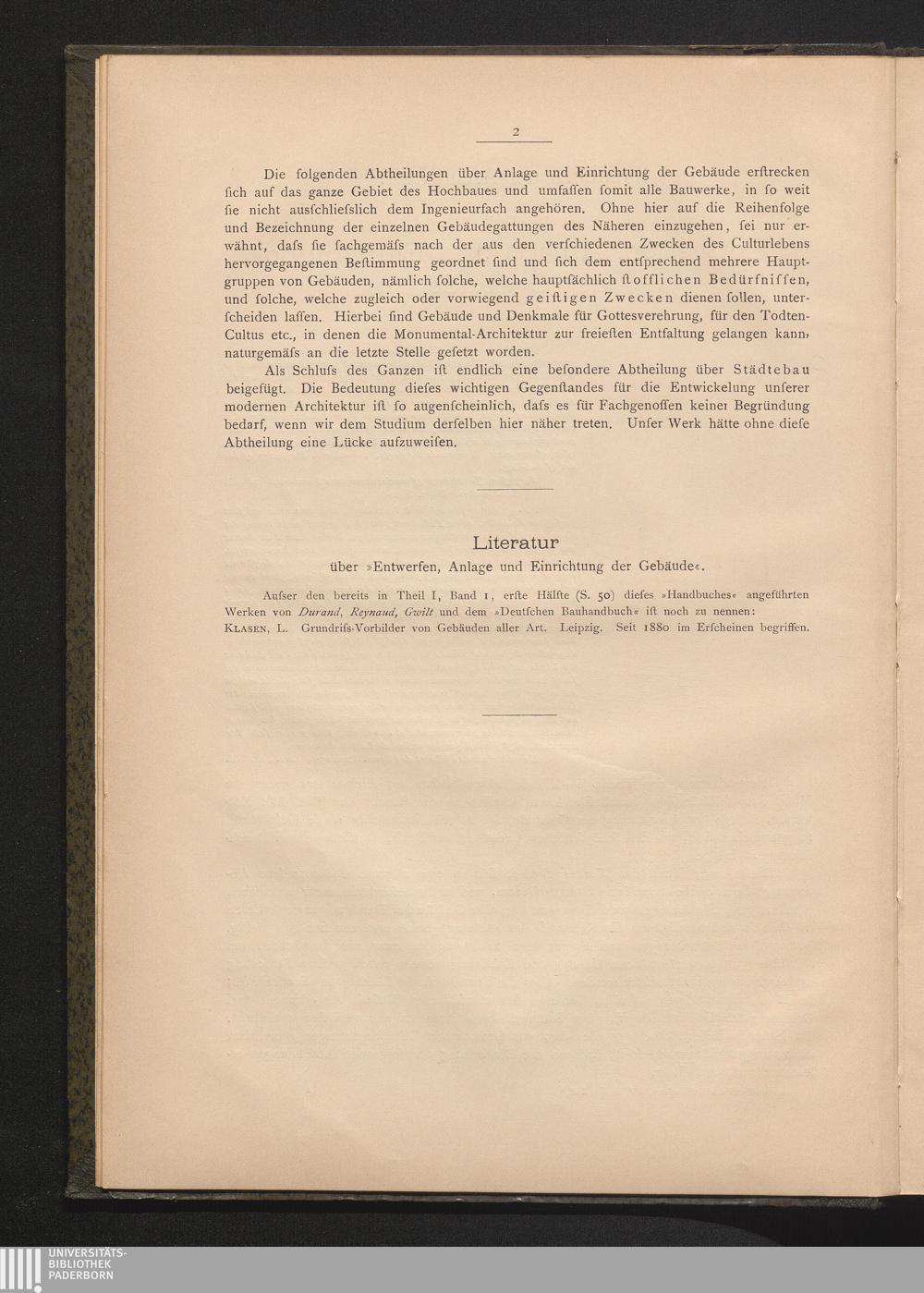 Literatur über "Entwerfen, Anlage und Einrichtung der Gebäude"