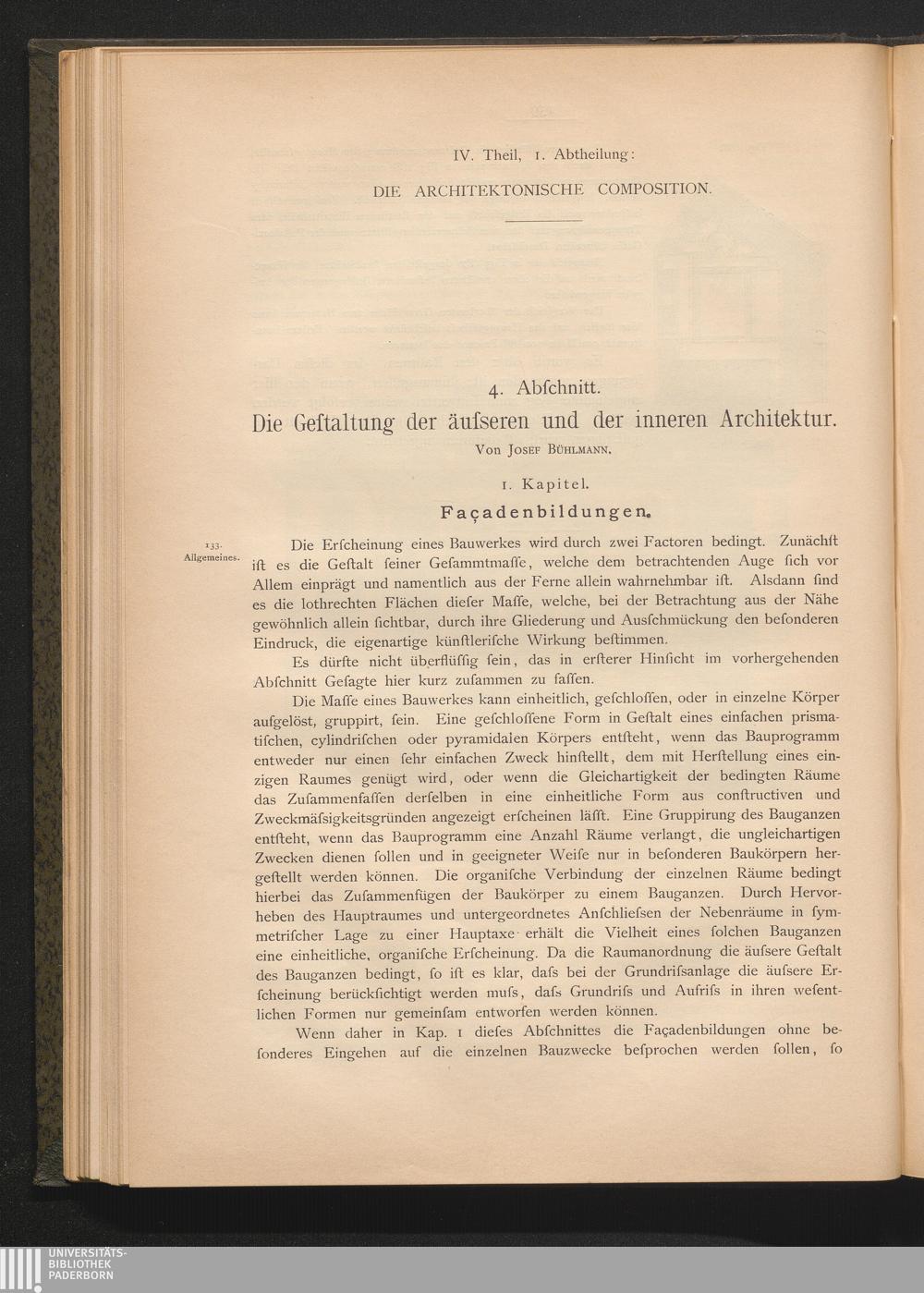 4. Abschnitt. Die Gestaltung der äusseren und der innneren Architektur.