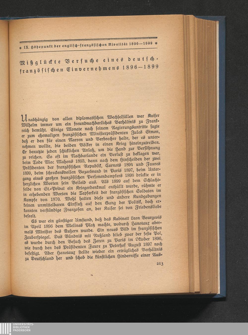 Mißglückte Versuche eines deutsch-französischen Einvernehmens 1896 - 1899