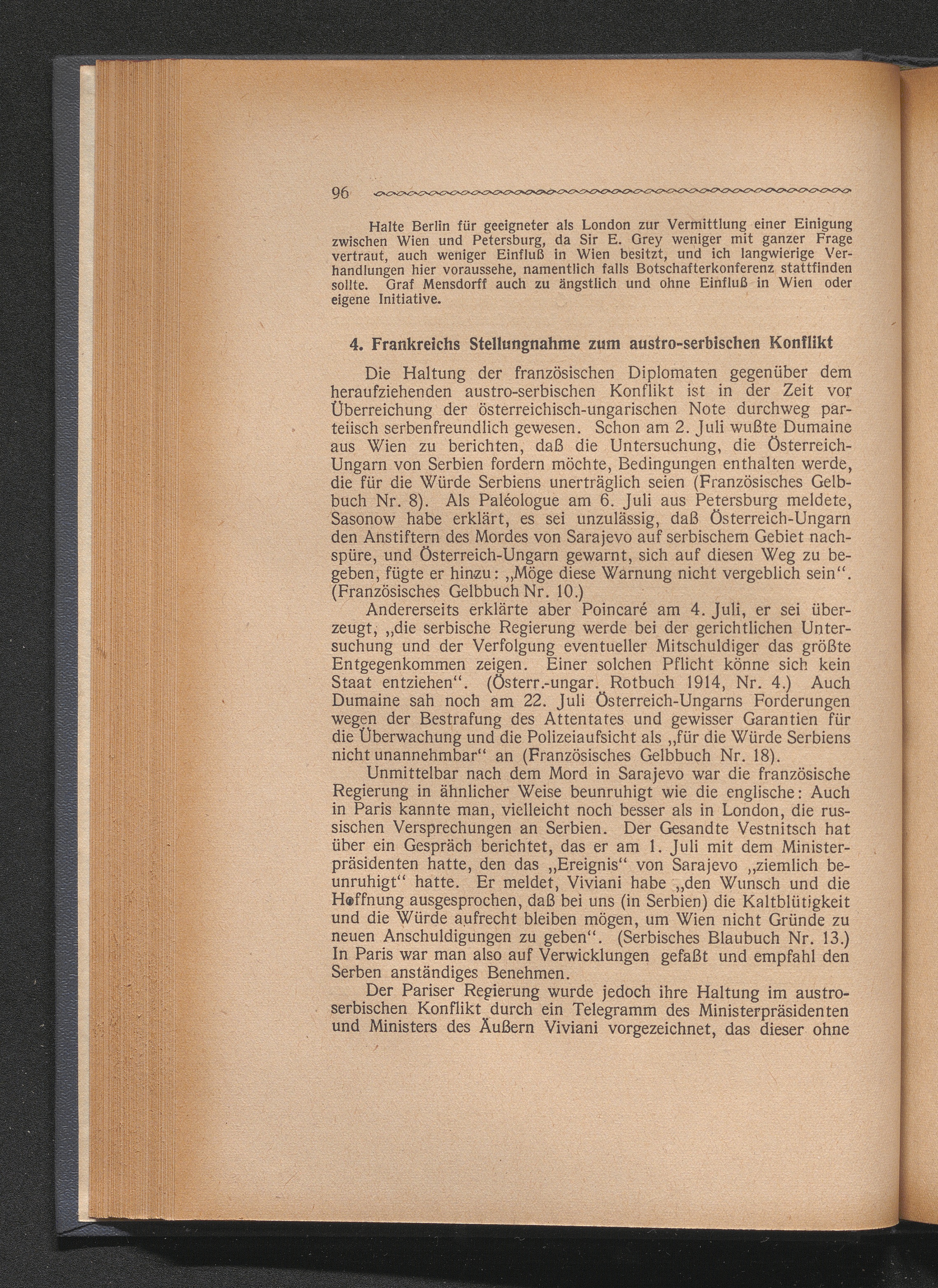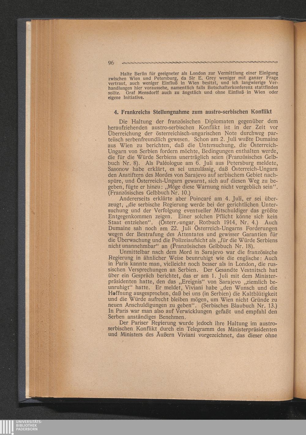 4. Frankreichs Stellungnahme zum austro-serbischen Konflikt