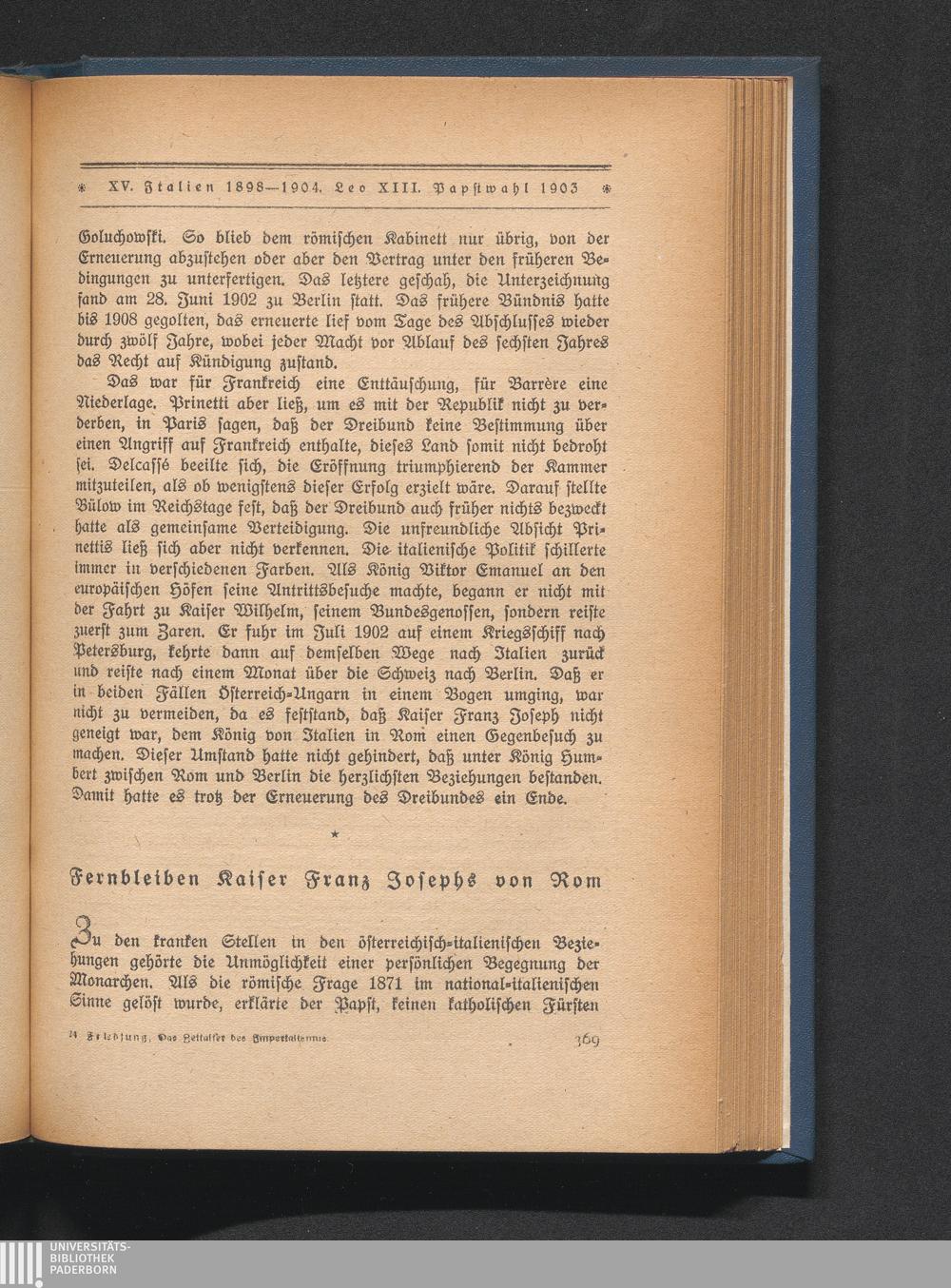 XV. Jtalien 1898 - 1904. Leo XIII. Wahl Pius' X.