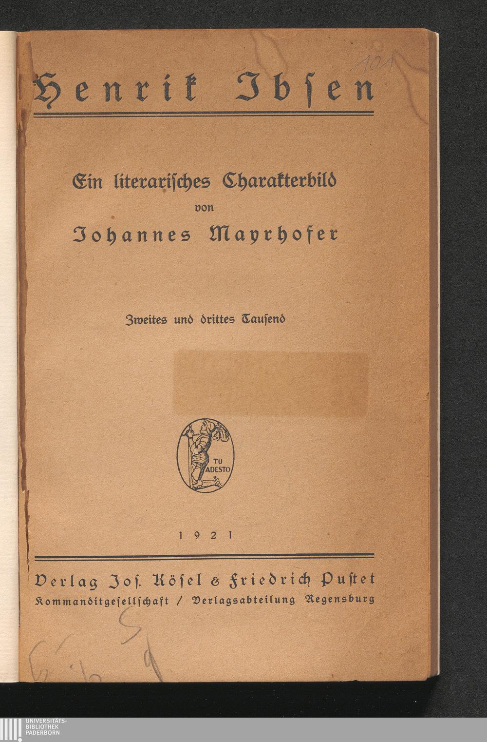 Henrik Ibsen : ein literarisches Charakterbild / Johannes Mayrhofer
