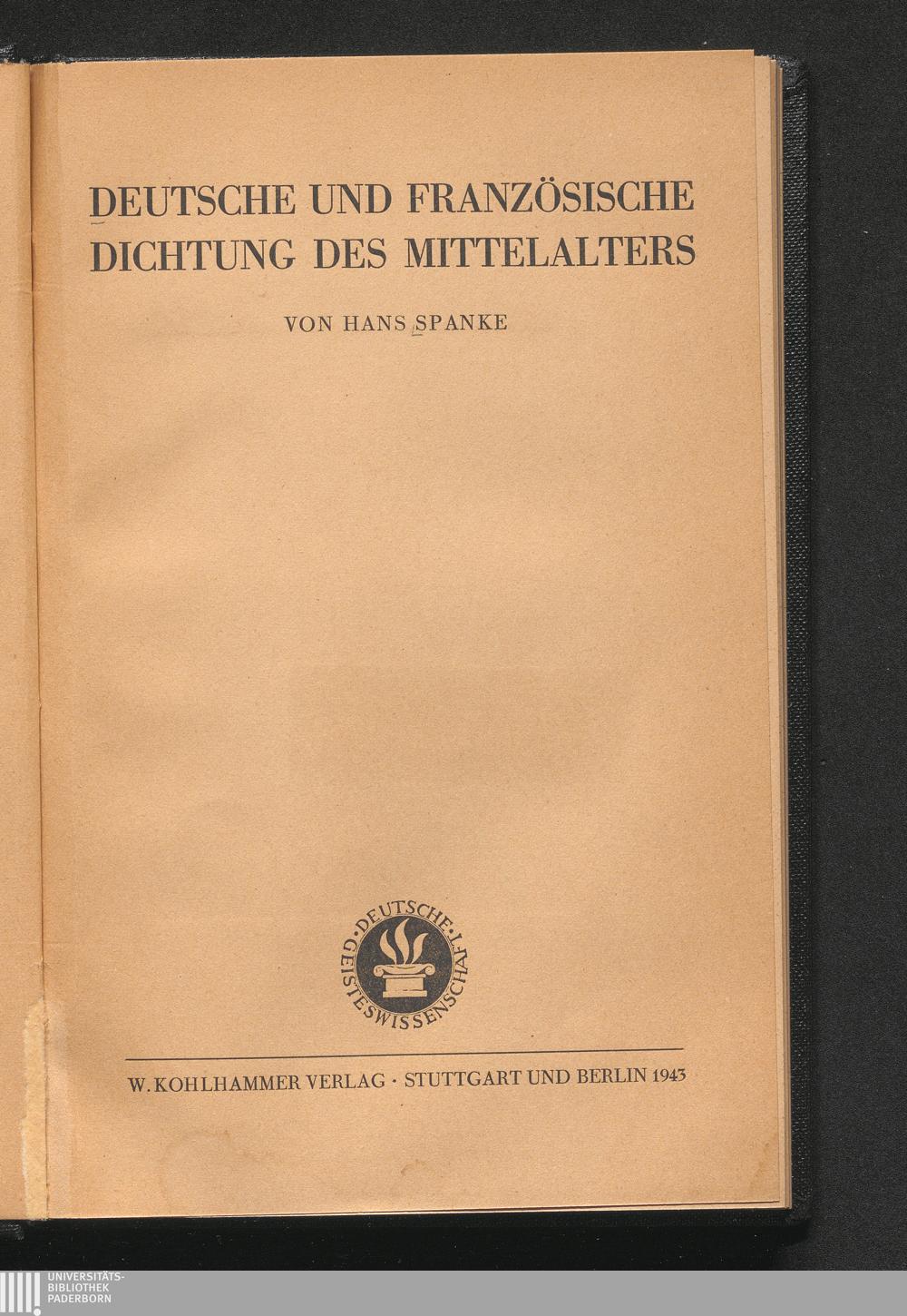 Deutsche und französische Dichtung des Mittelalters / von Hans Spanke