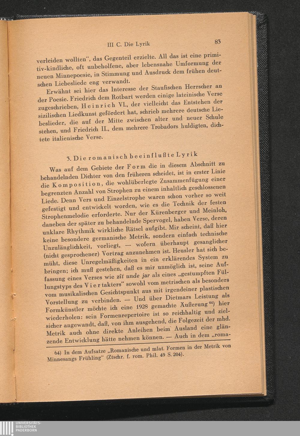 3. Die romanisch beeinflußte Lyrik.