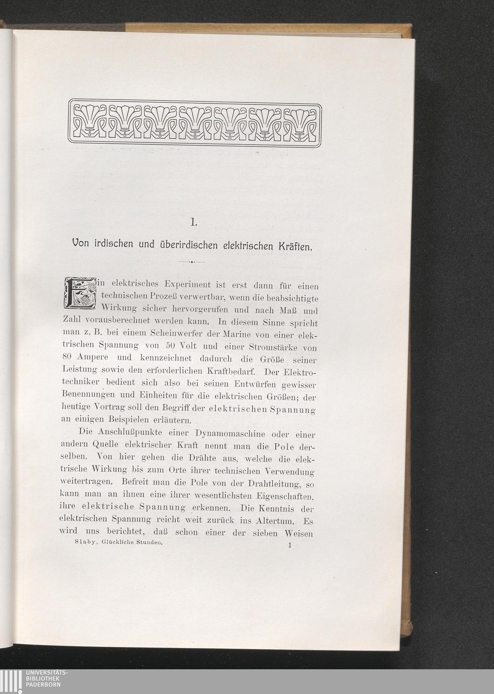 Glückliche Stunden : Entdeckungsfahrten in den elektrischen Ozean ; gemeinverständliche Vorträge / von A. Slaby
