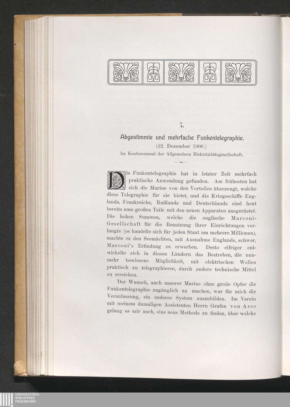 7. Abgestimmte und mehrfache Funkentelegraphie